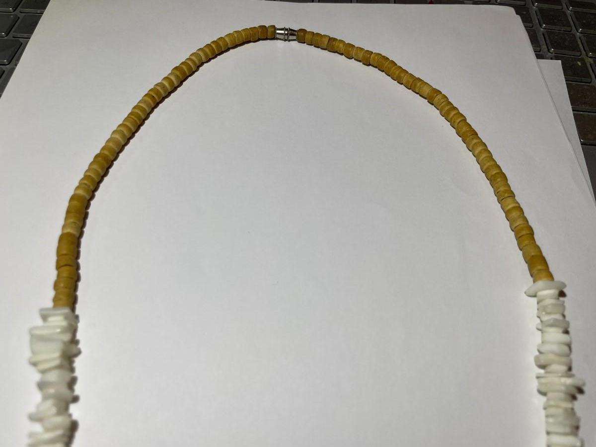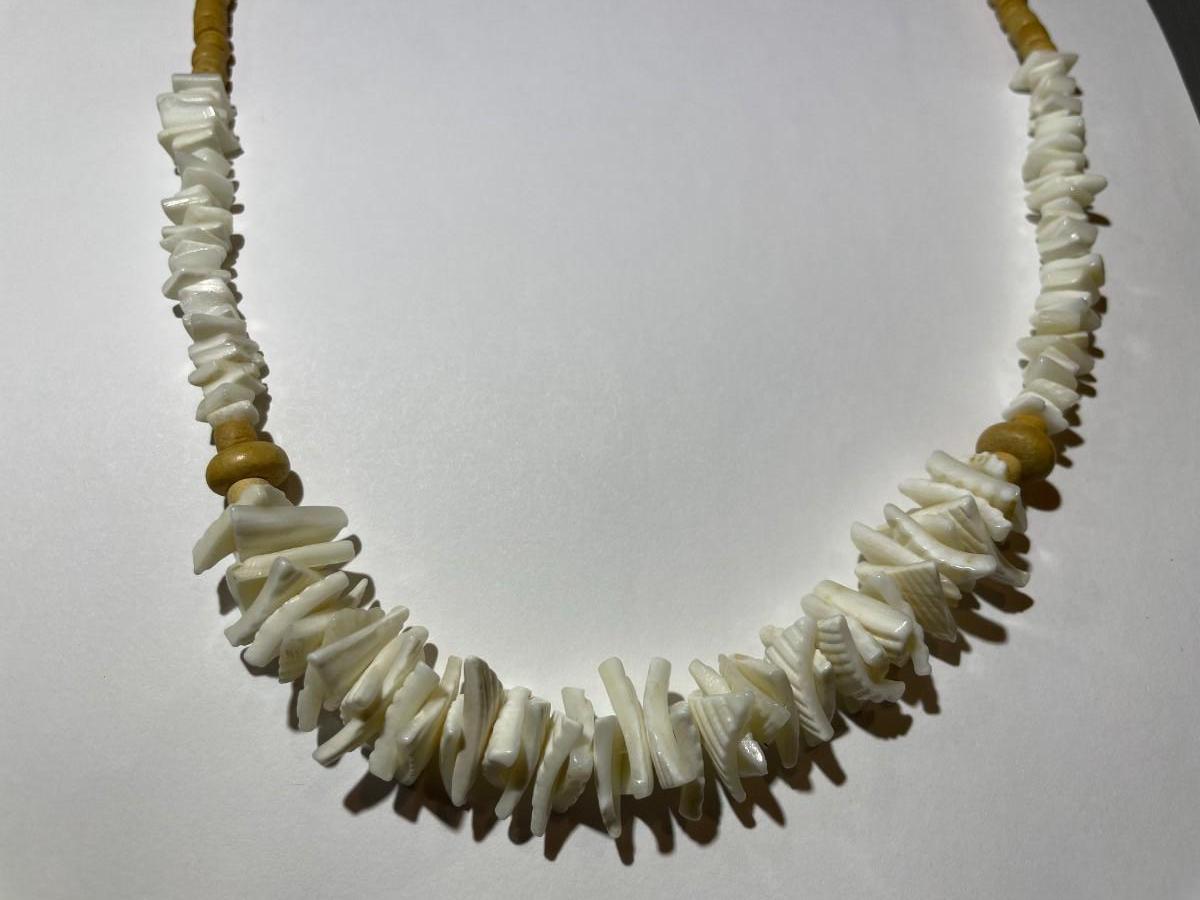 Vintage Puka Shell Necklace - 22" Long, White Chipped Seashell in VG Preowned Condition. FREE DOMESTIC SHIPPING.