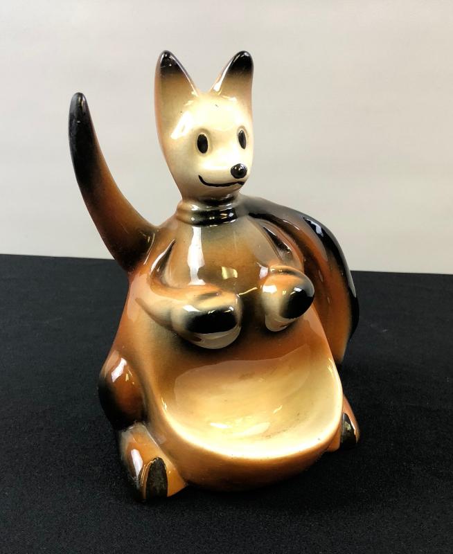 From Fine Ent. in 1956 here is a ceramic Boxing Kangaroo dresser caddy..for keys..wallet..change....Popularized by the movie "PulP Fiction"...Very good condition...