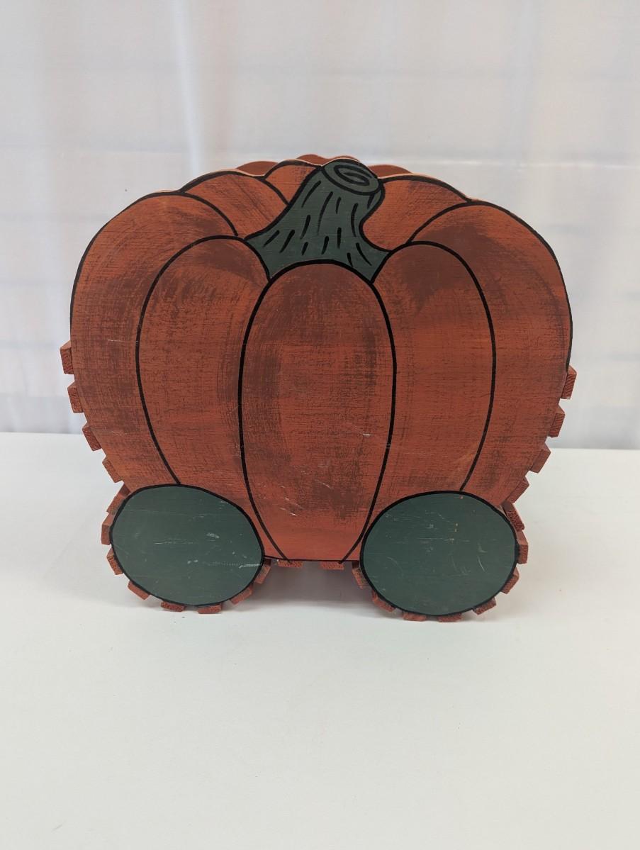 Vintage Pumpkin Wooden Basket Fall Decor Harvest Halloween Holiday