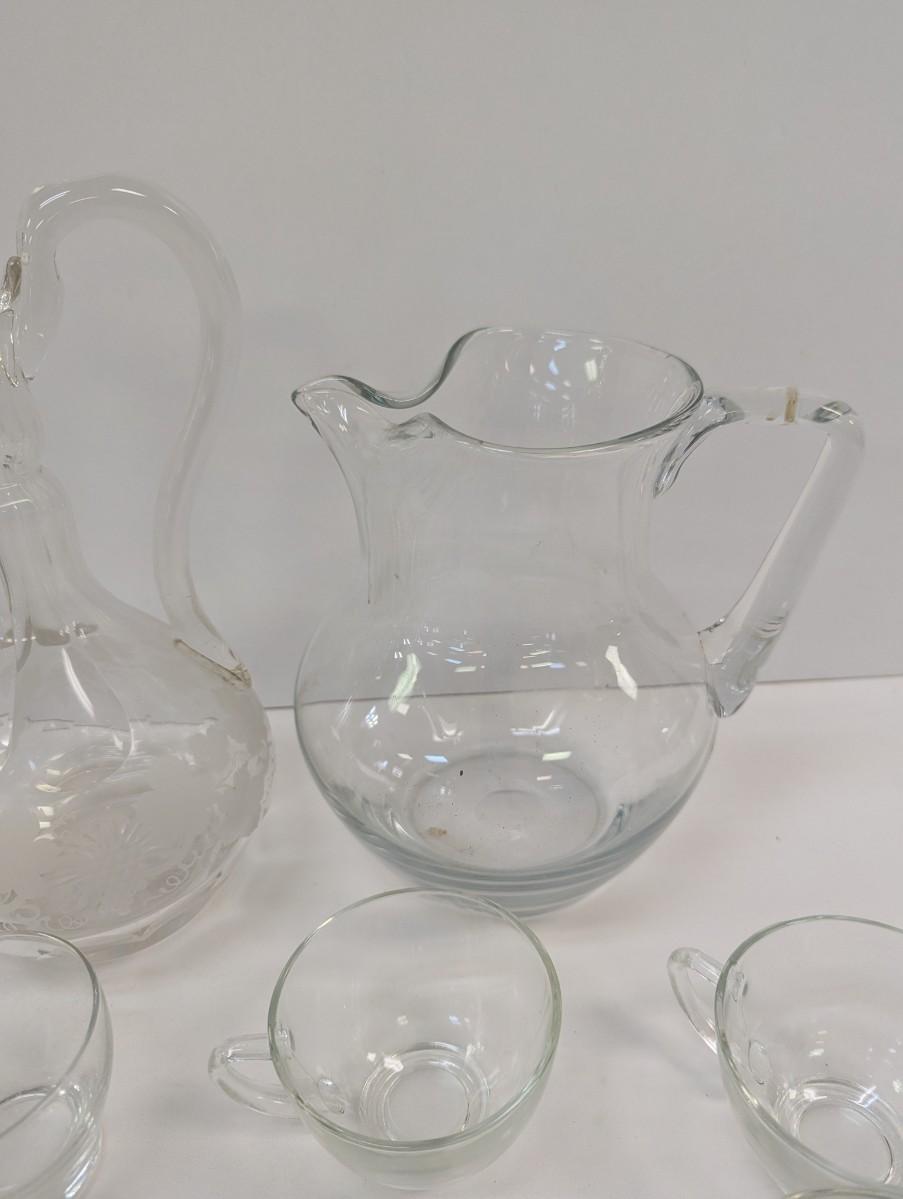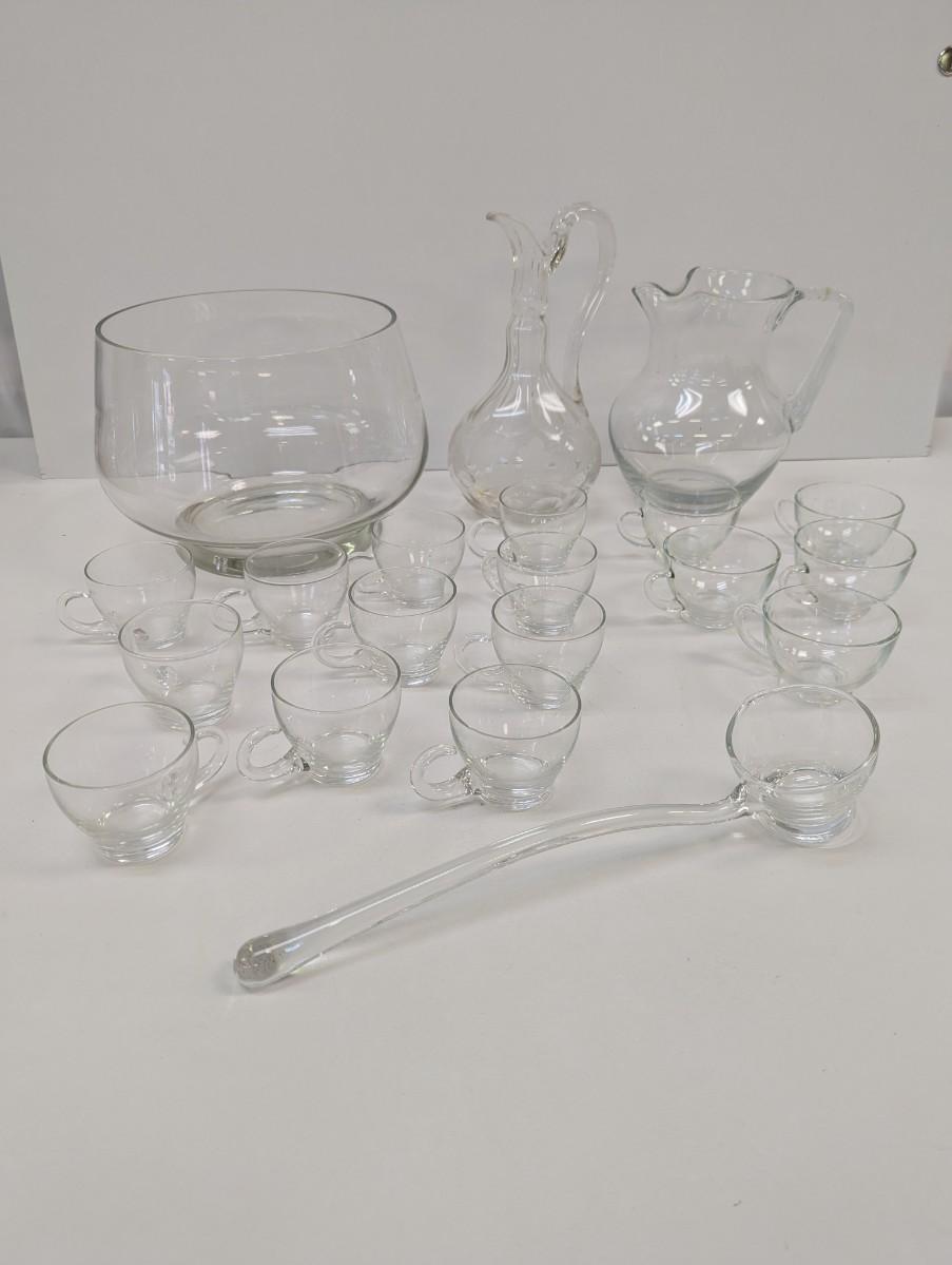 Vintage Punch Bowl With Glass Wine & Tea Pitchers
