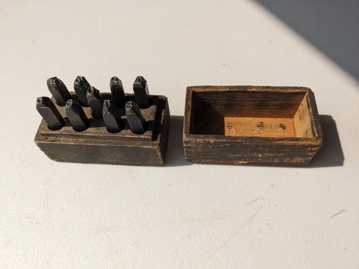 Vintage Punch Set Steel Numbers Numerals in Wooden Box