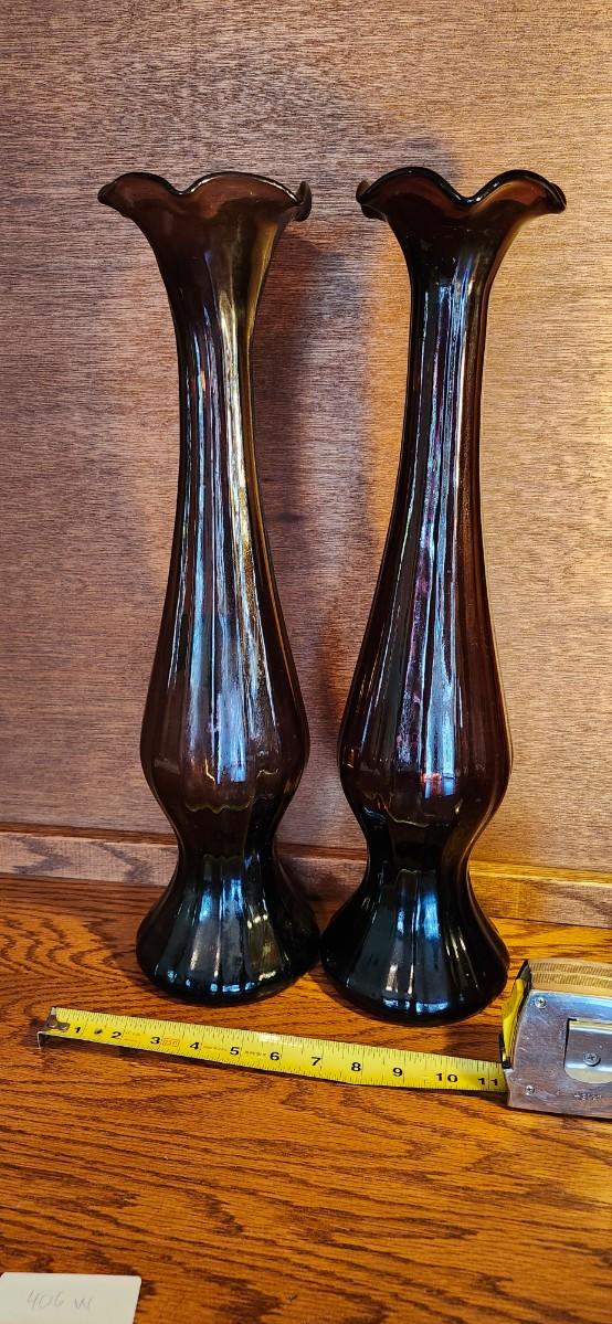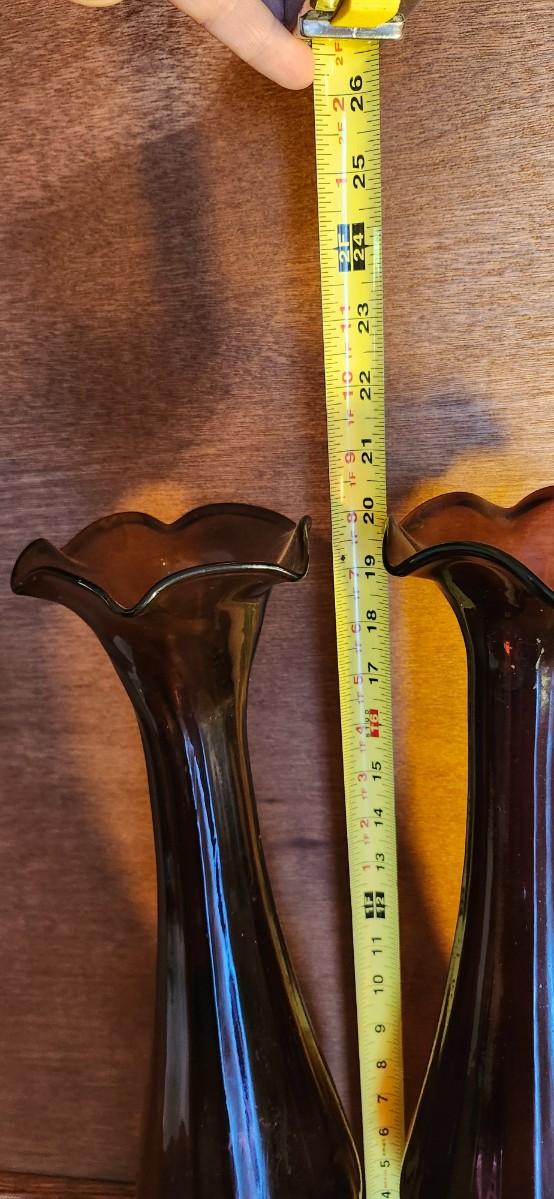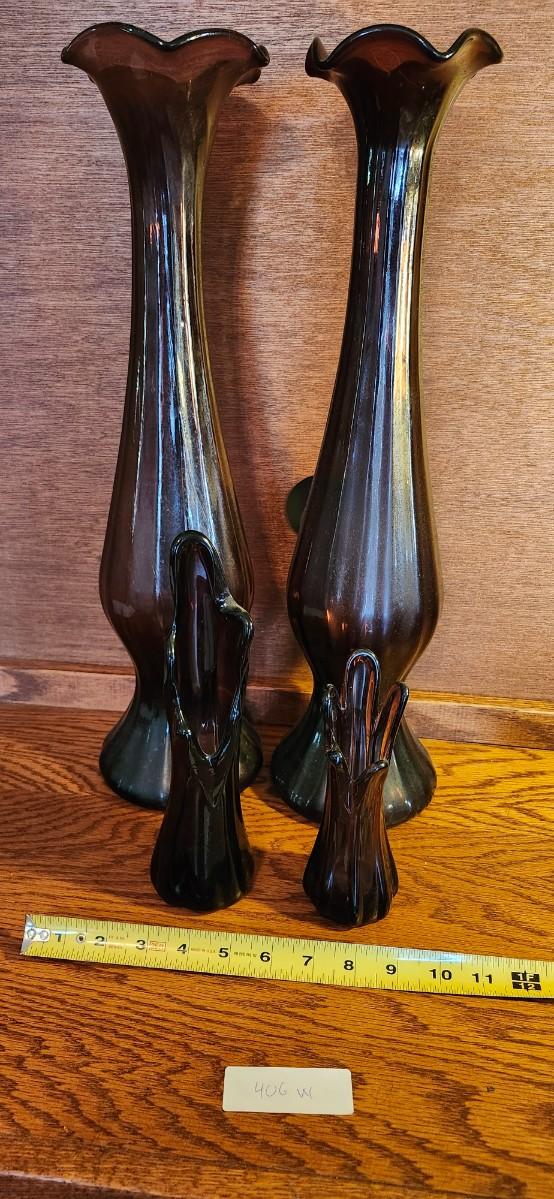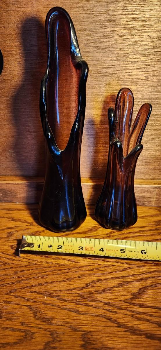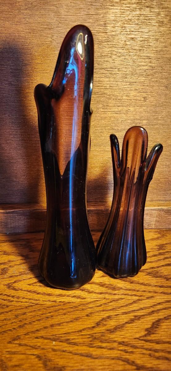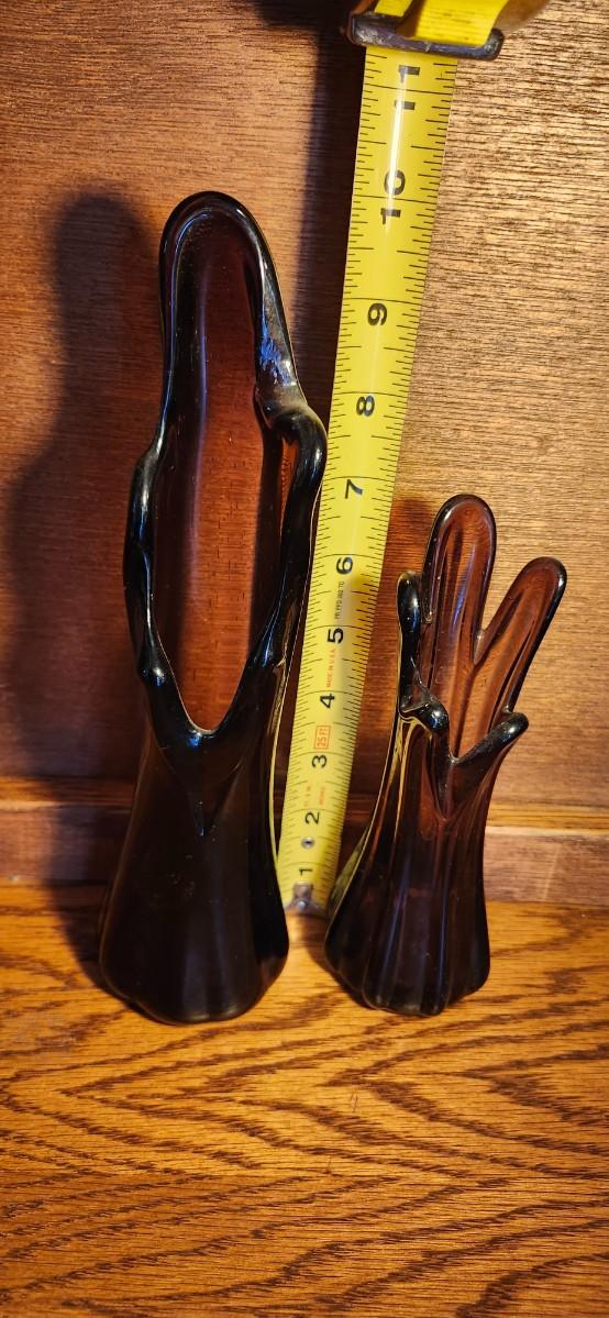 Vintage Purple Amethyst 5 Finger Glass Swung Vases and Two Tall Purple Florentina Vase