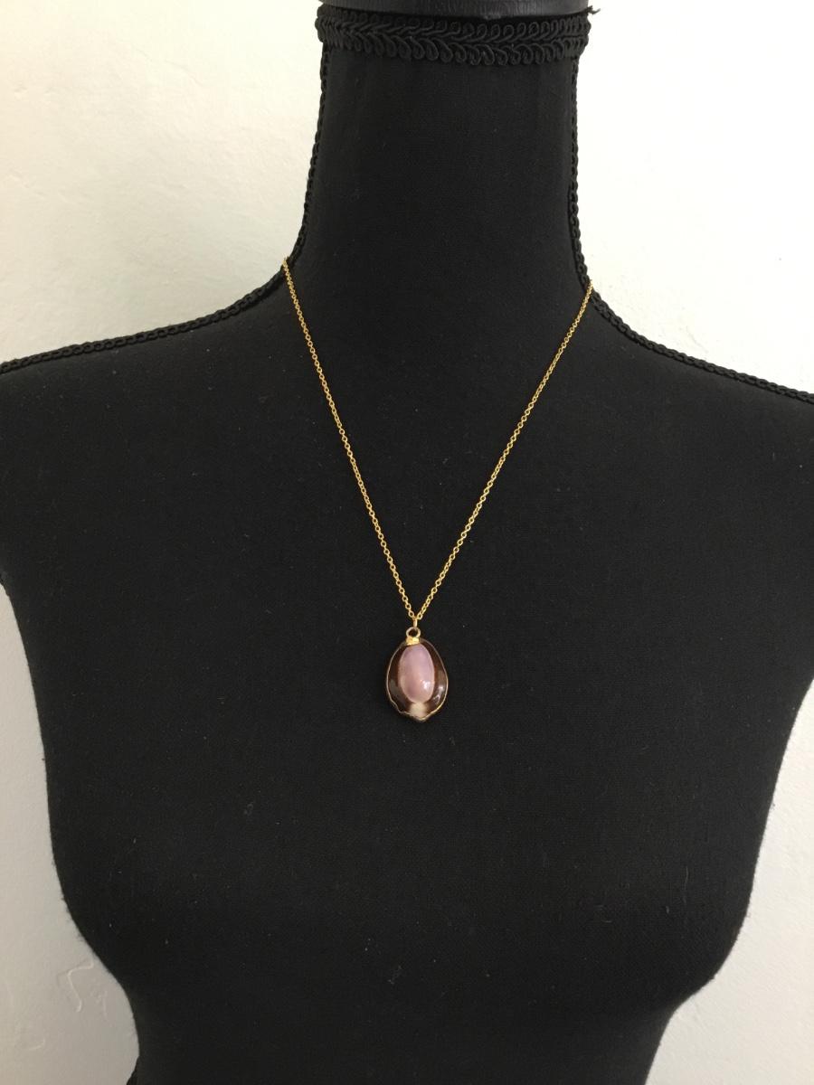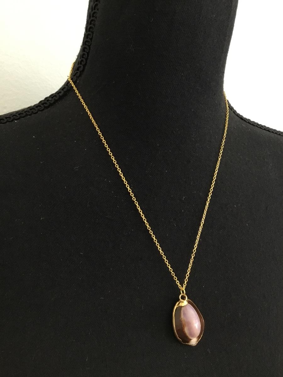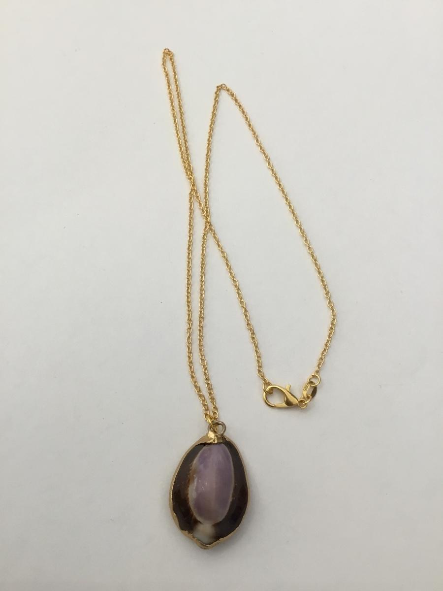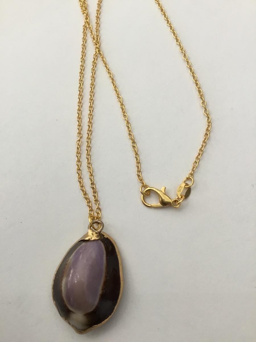 Vintage purple Cowrie shell & Gold 925 necklace