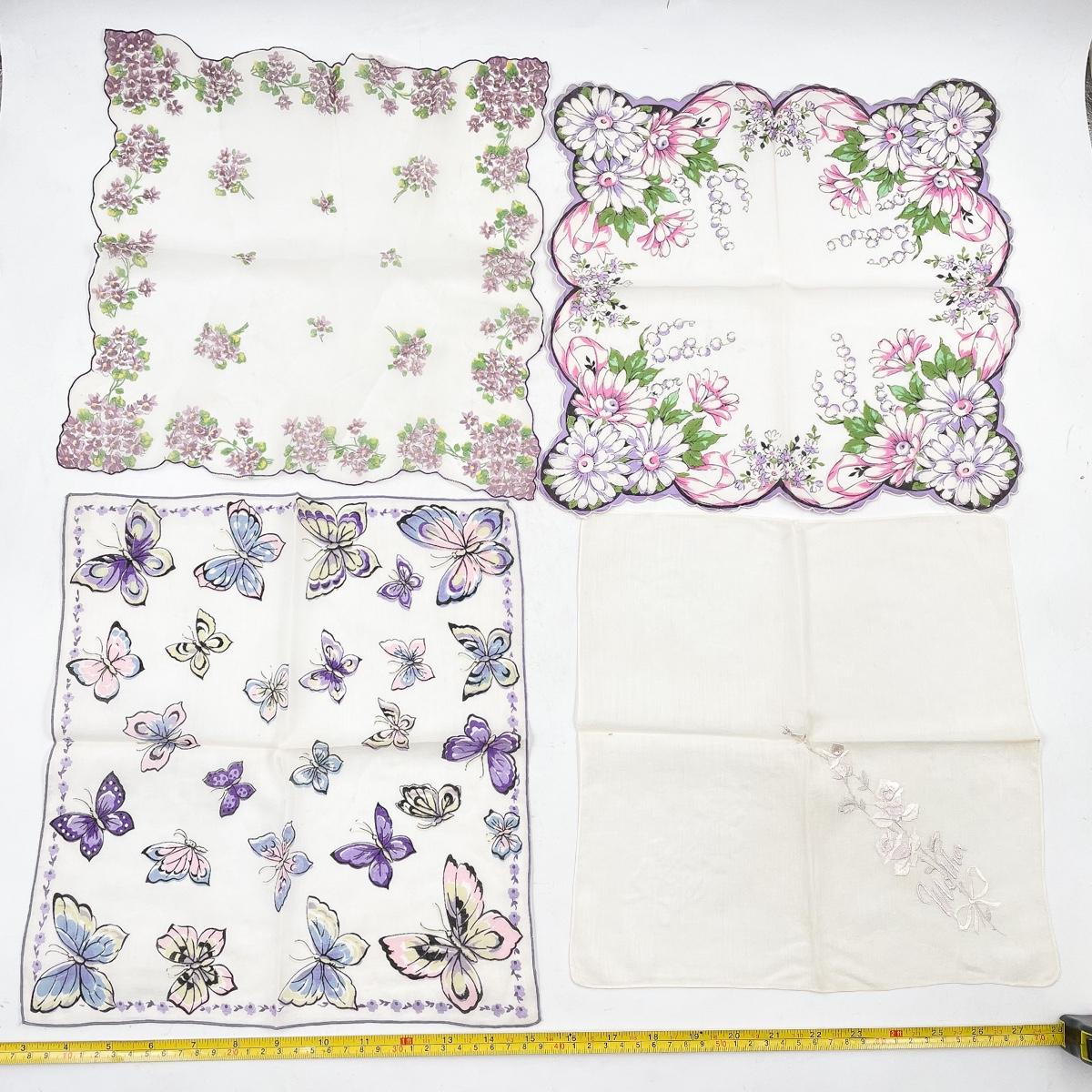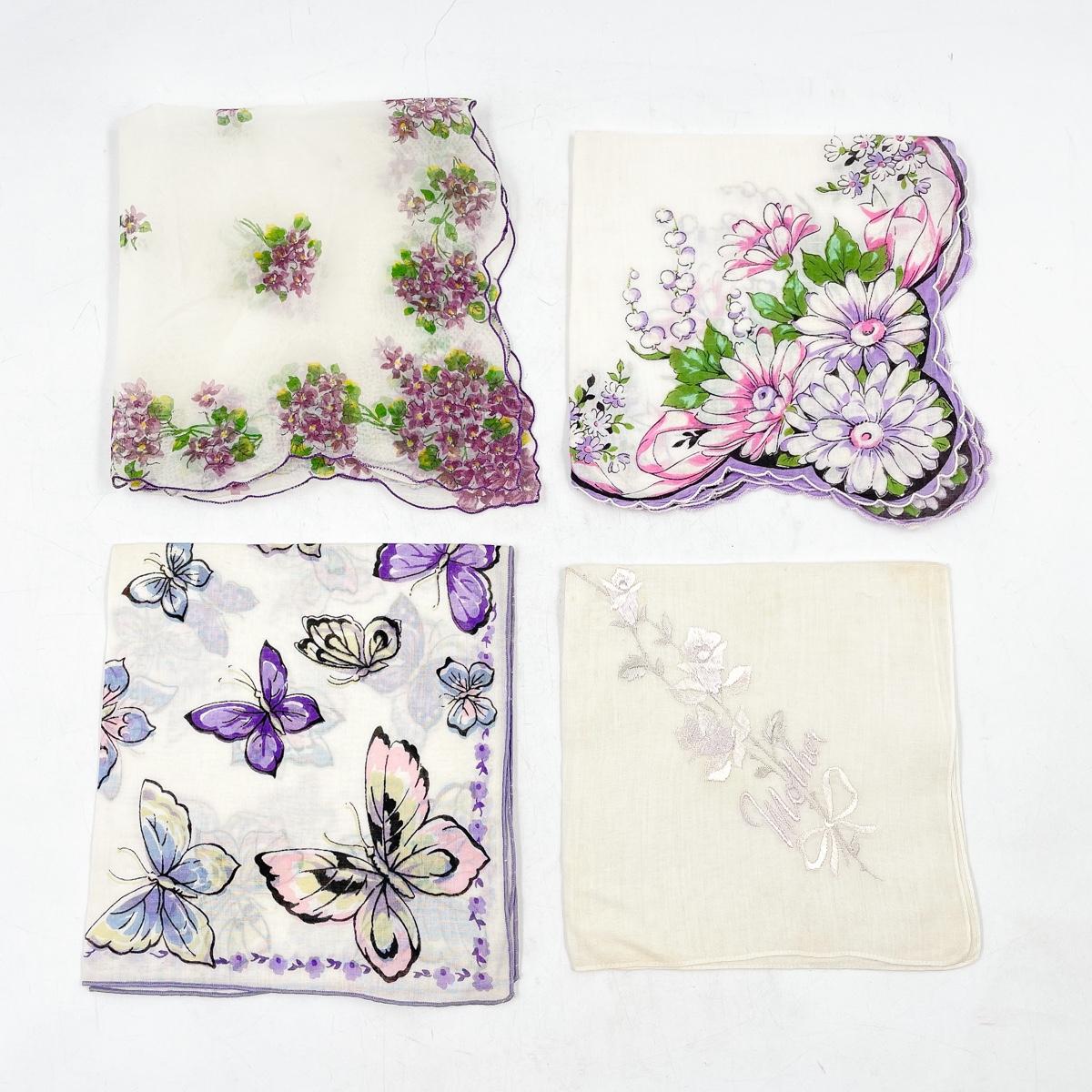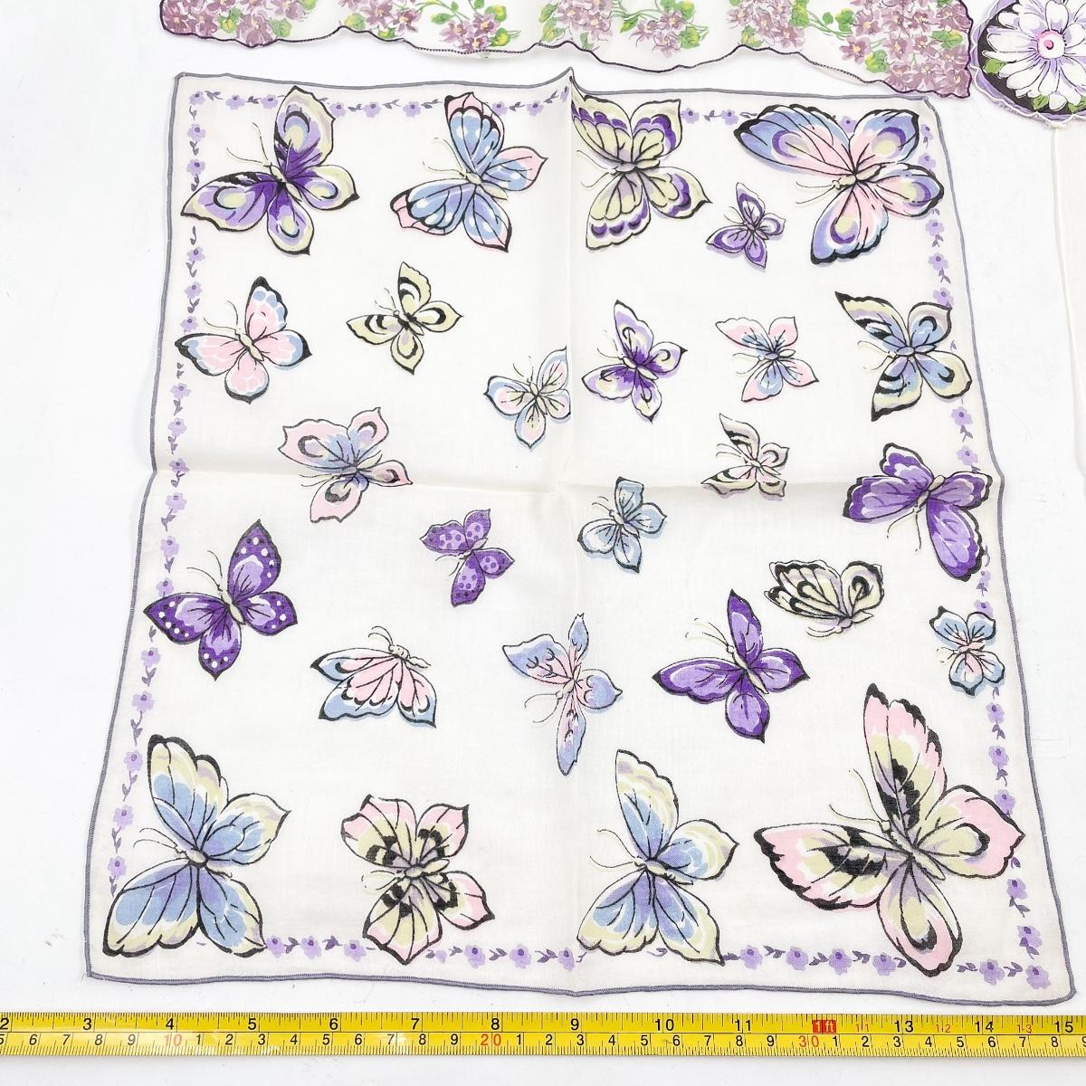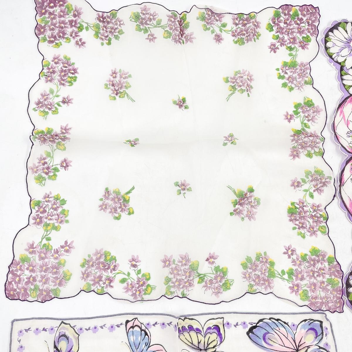 VINTAGE PURPLE FLORAL & BUTTERFLY HANDKERCHIEFS