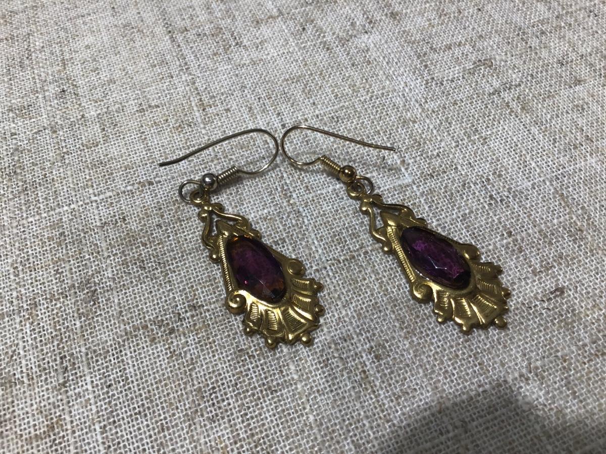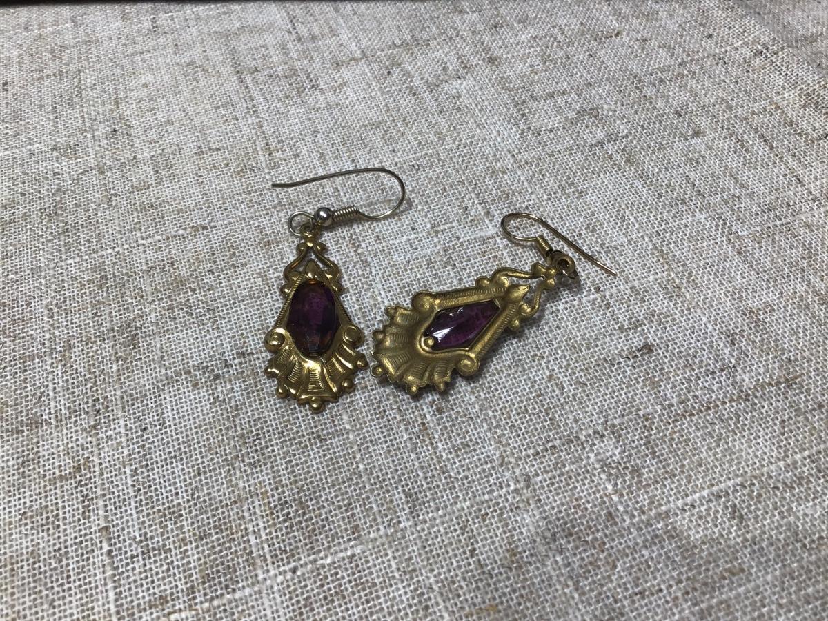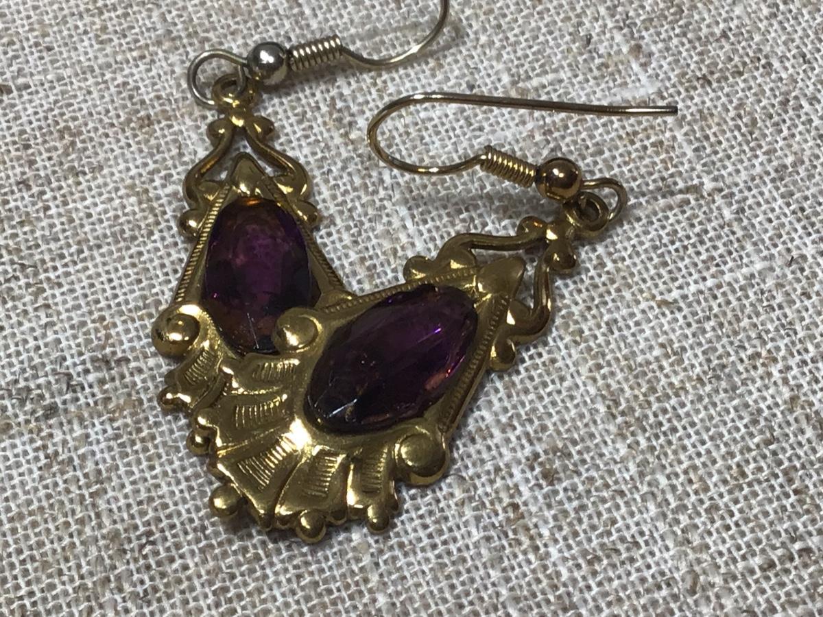 Vintage Purple Glass Earrings Gold Tone