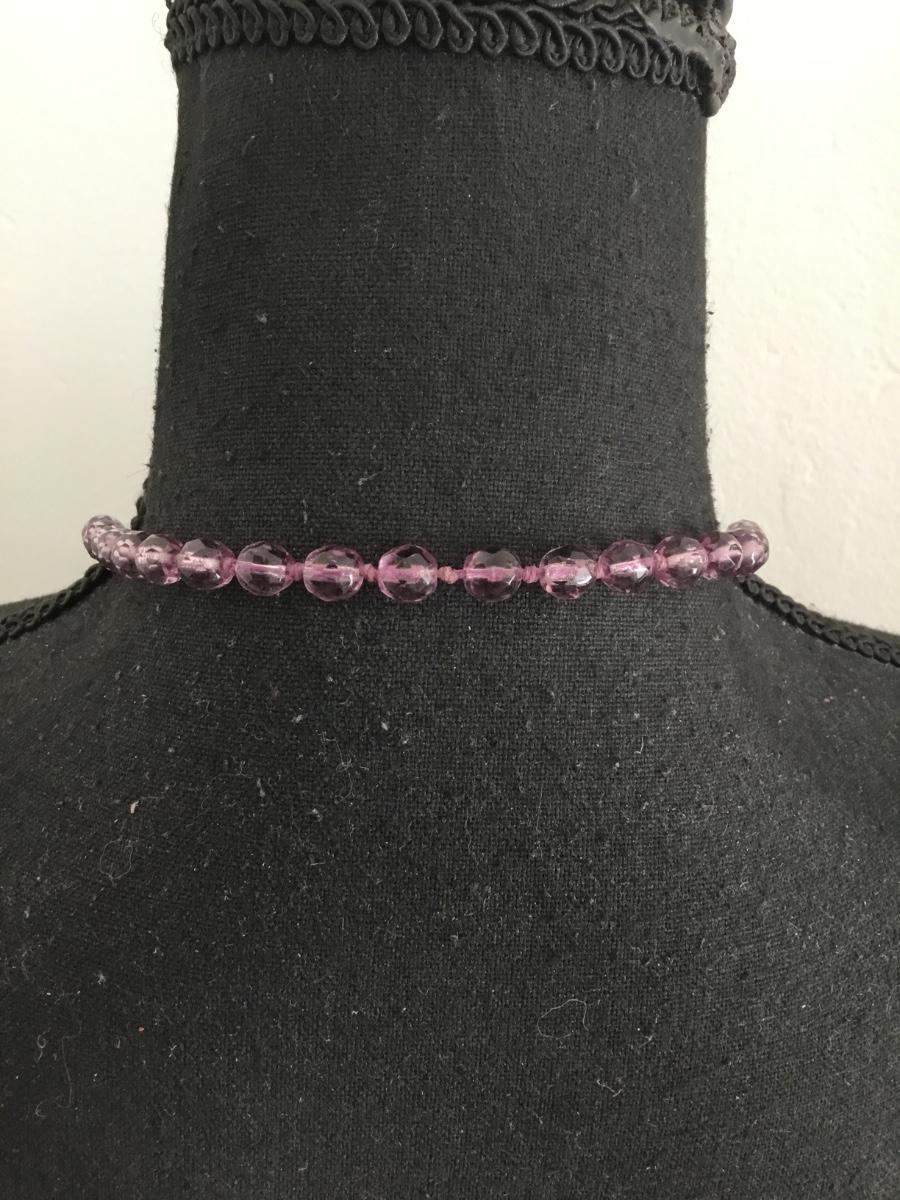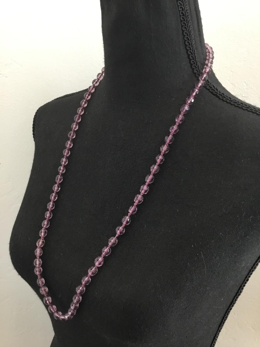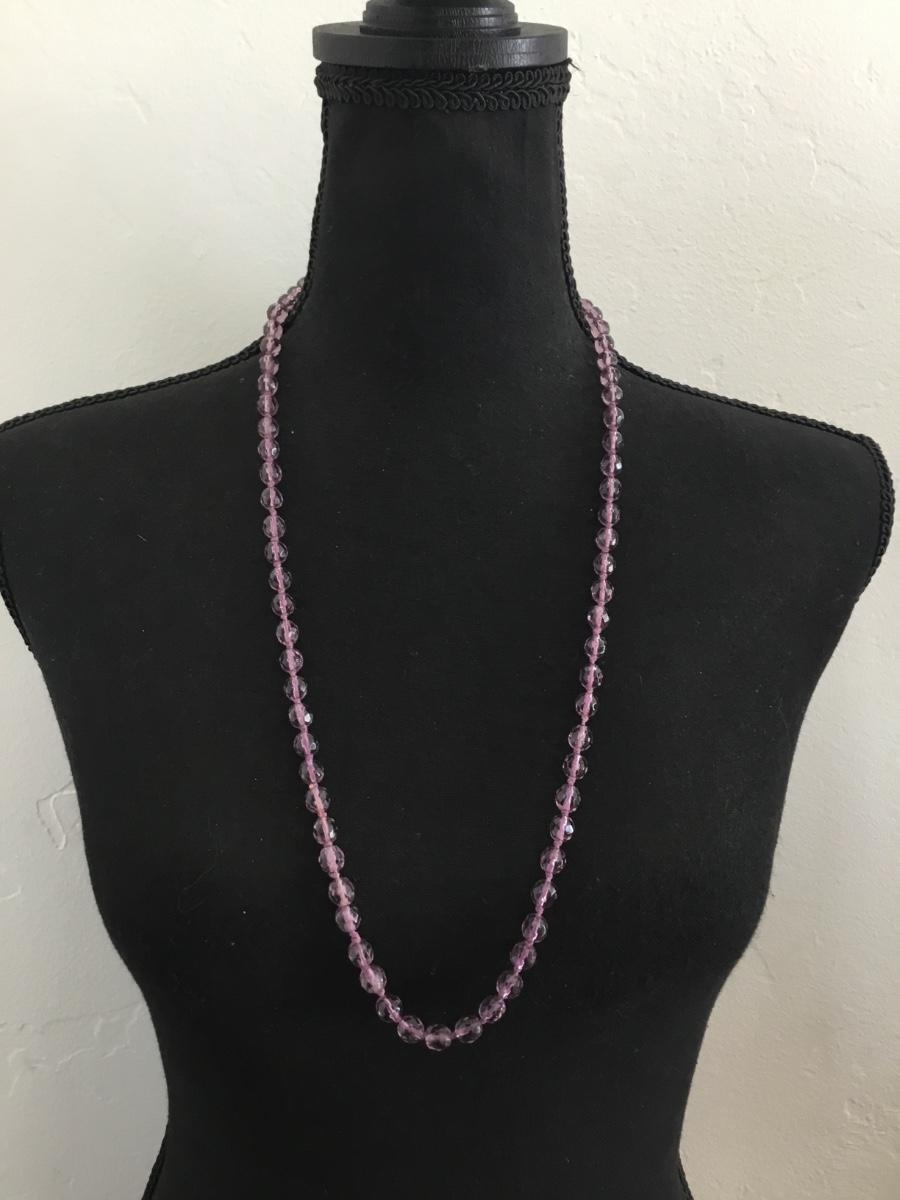 Vintage, purple light lavender, faceted, glass bead double knotted necklace