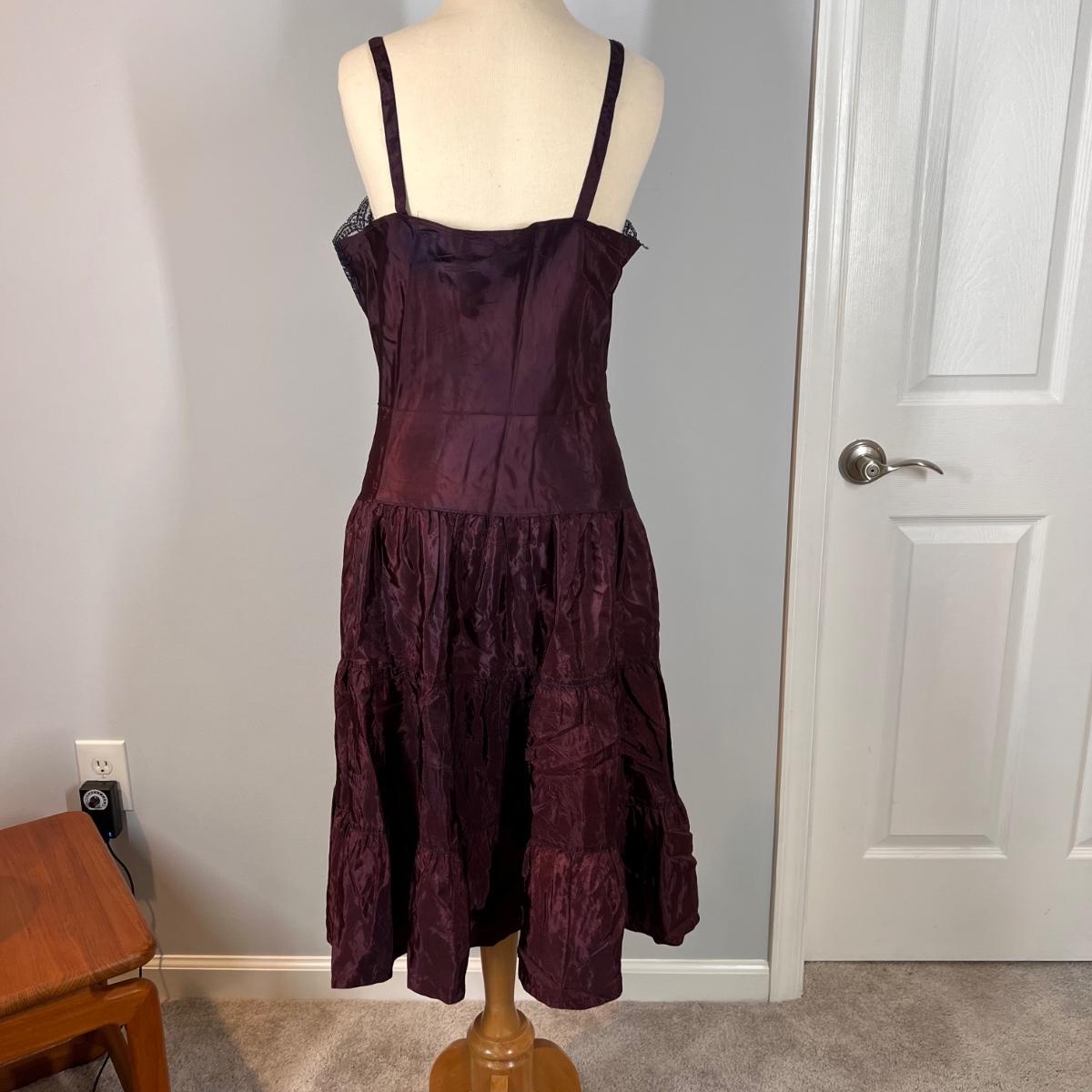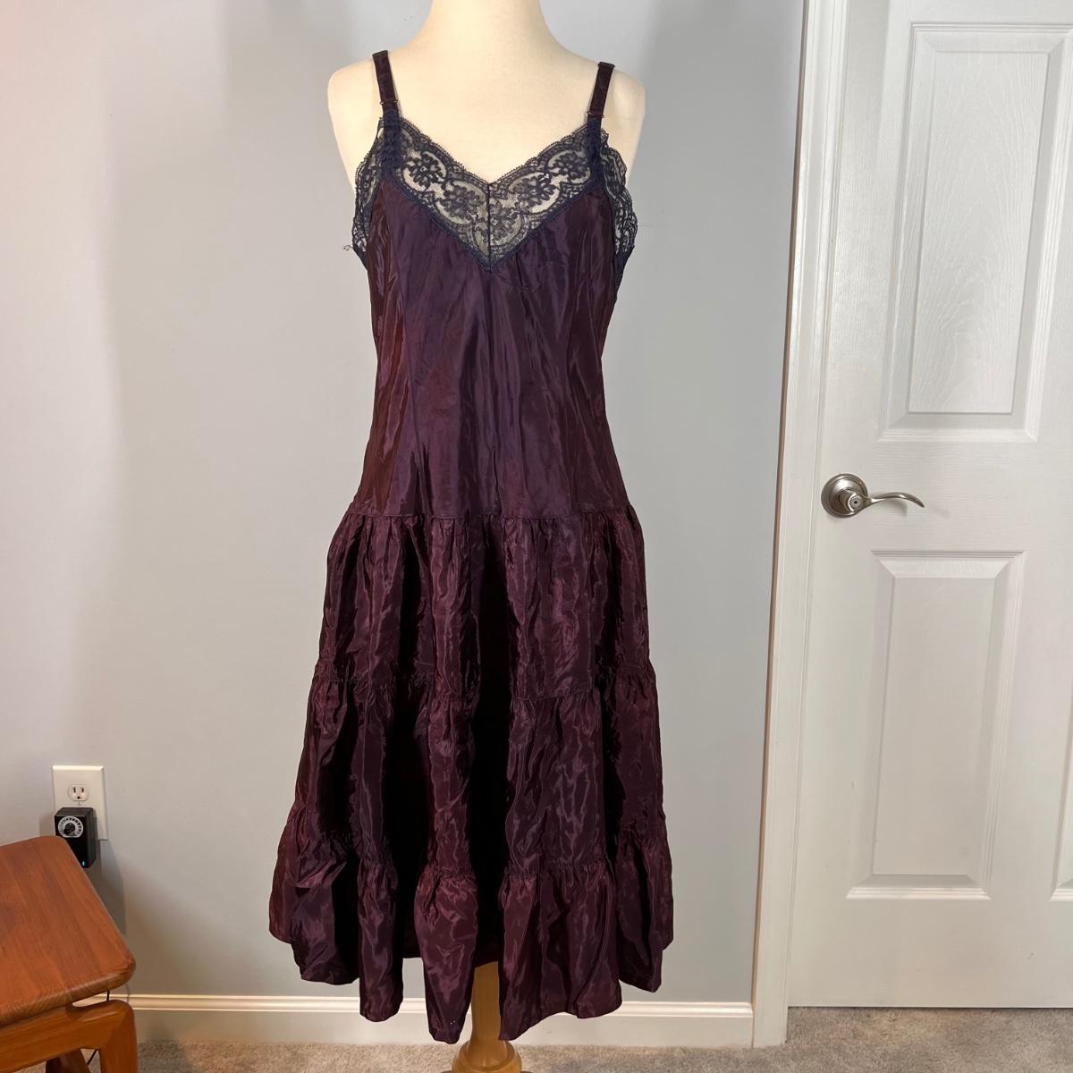 Tiered lace skirt, lace at bust, adjustable straps. Good condition for age