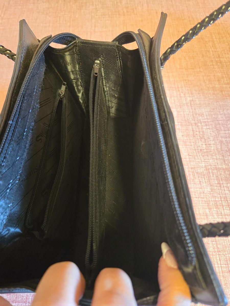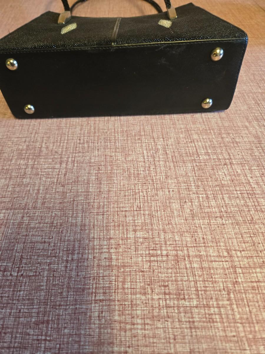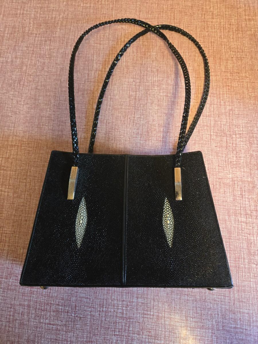 Blk/ white vintage stingray leather purse with braided handle. Says Stingray all over the inside lining.