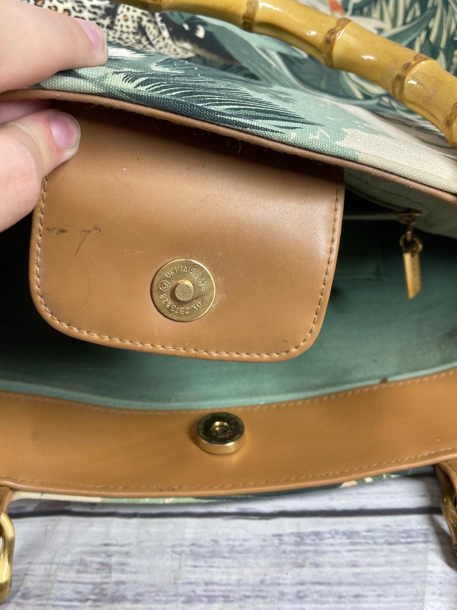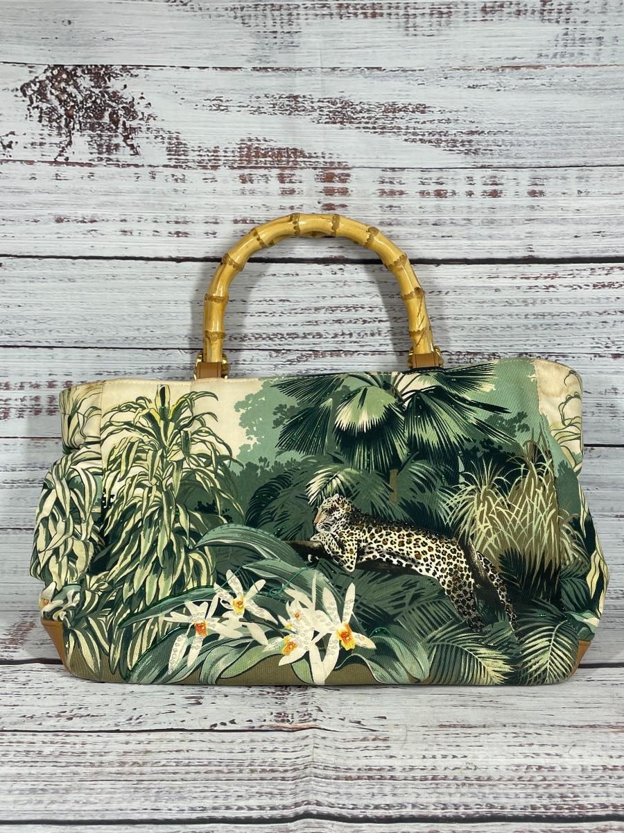Vintage Bamboo Handle Jungle Print Hand Bag Purse Clutch