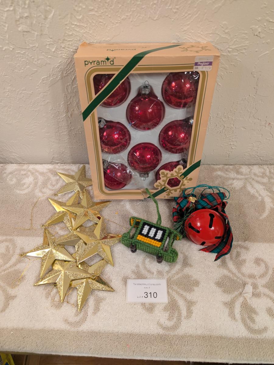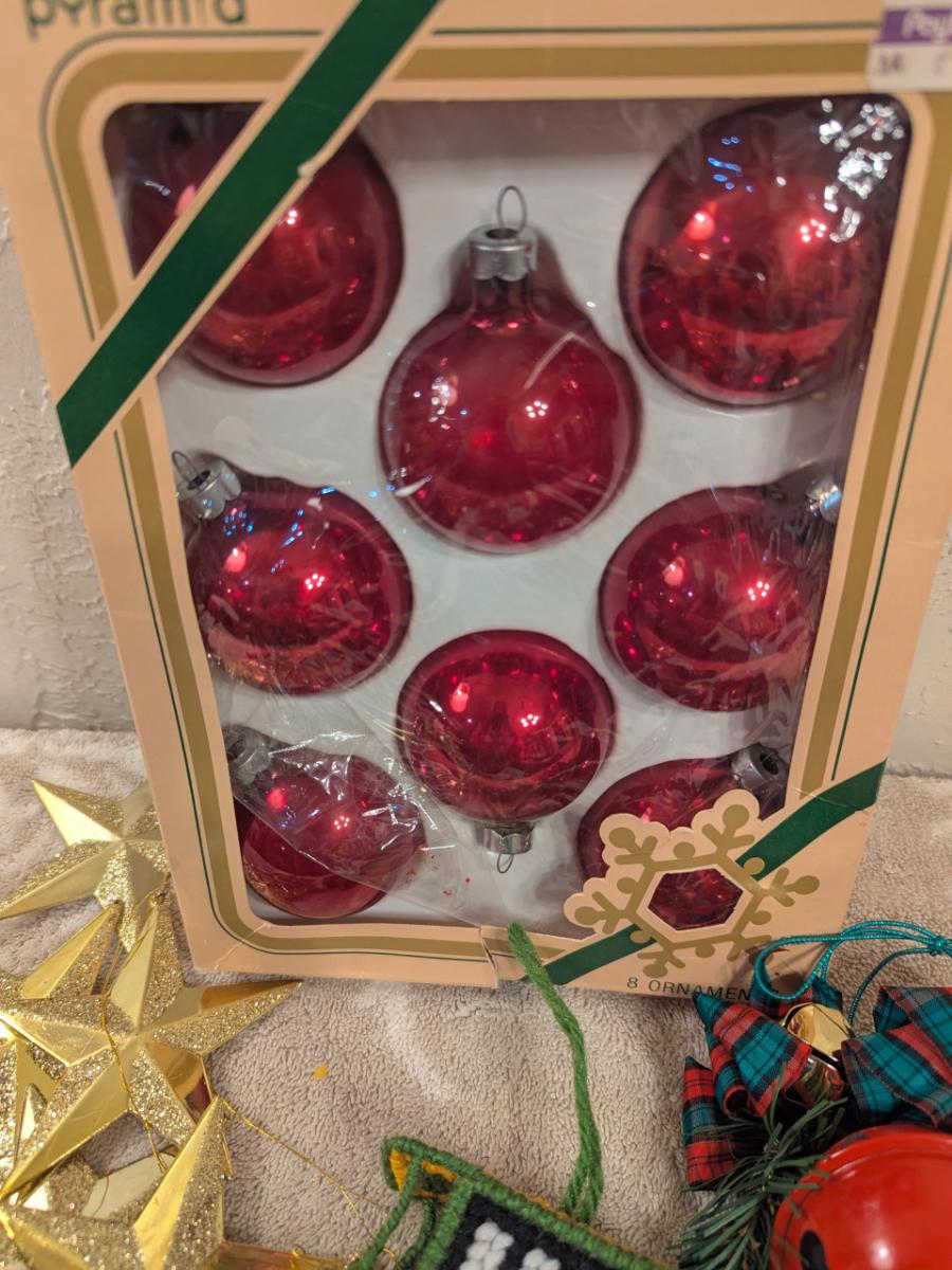 Vintage Pyramid red mercury glass ornaments and other various Christmas décor things