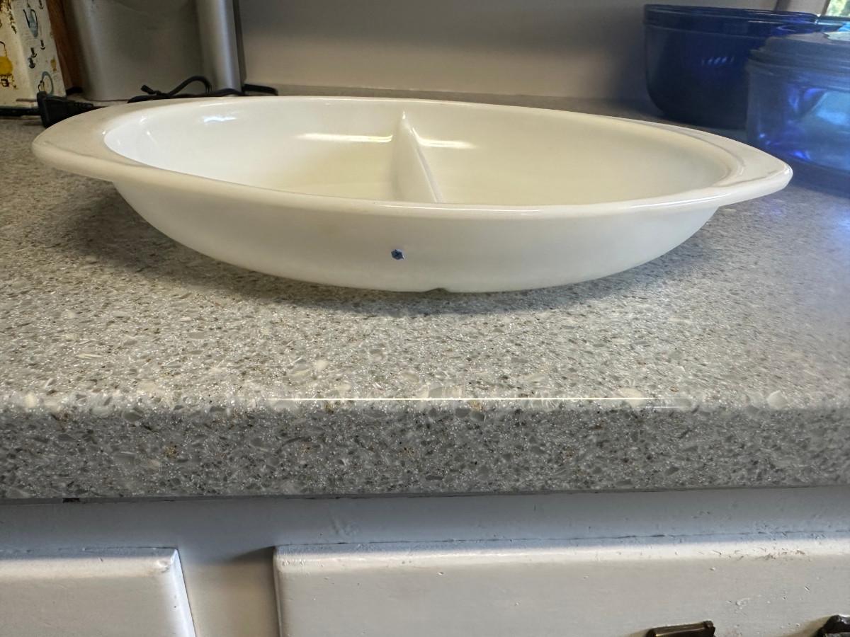 Vintage Pyrex 1063 White Milk Glass 1 1/2 Qt Divided Dish