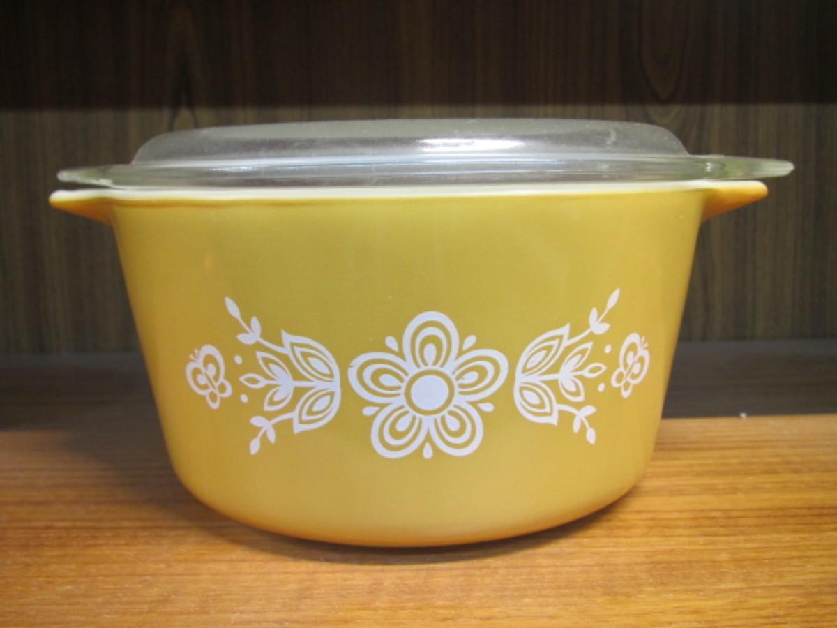 Vintage Pyrex 473 1 Quart Tan Flowers Casserole Dish With Lid
