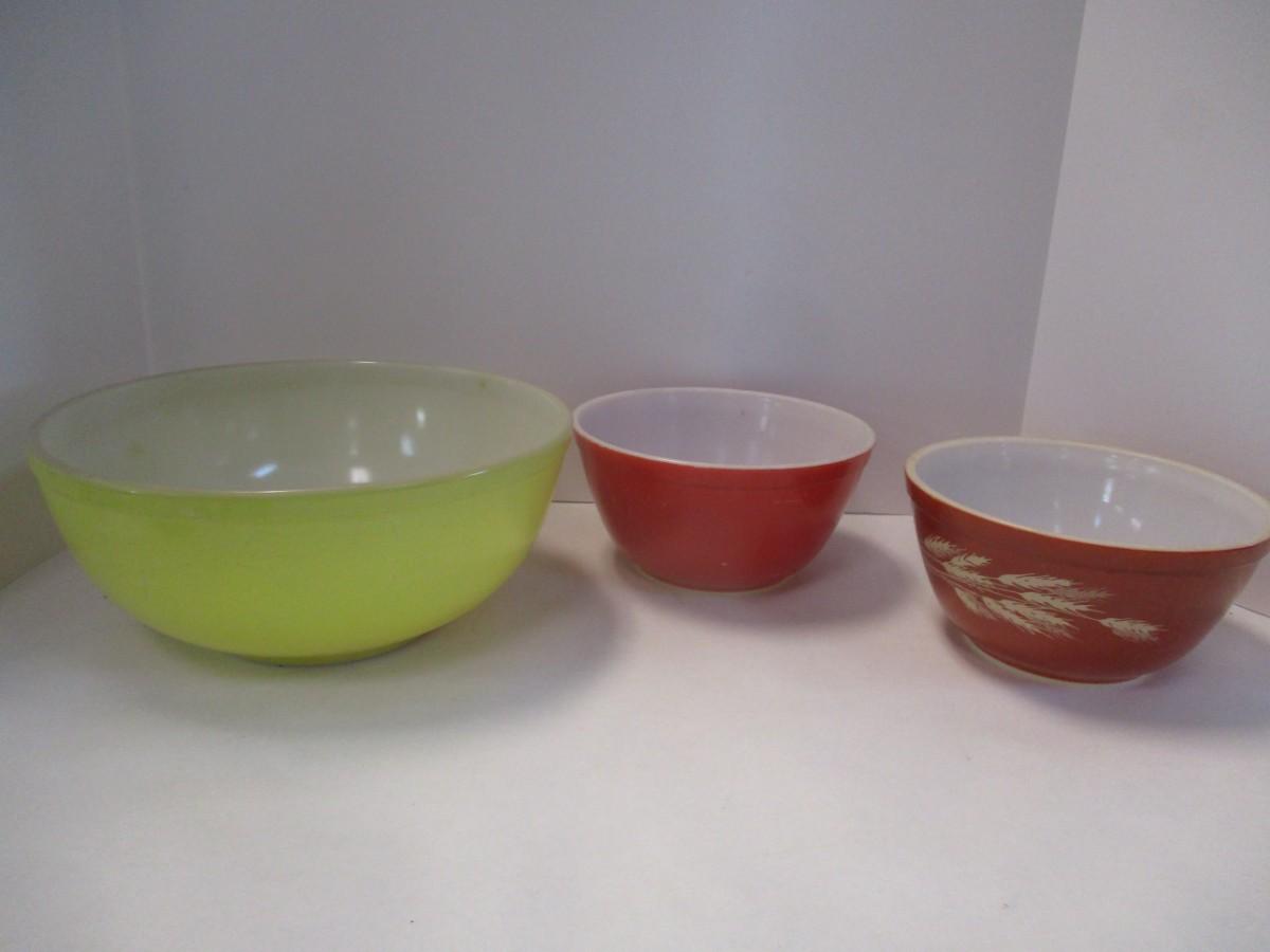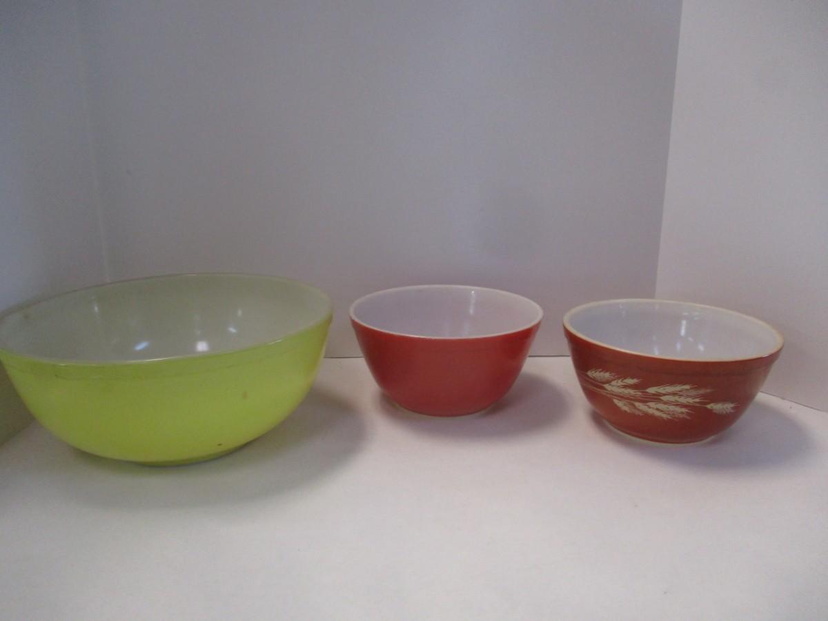 Vintage Pyrex Autumn Harvest Wheat Design Bowl & Vintage Pyrex Mixing Bowls