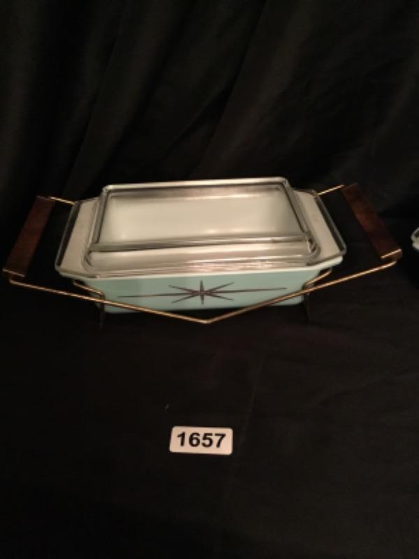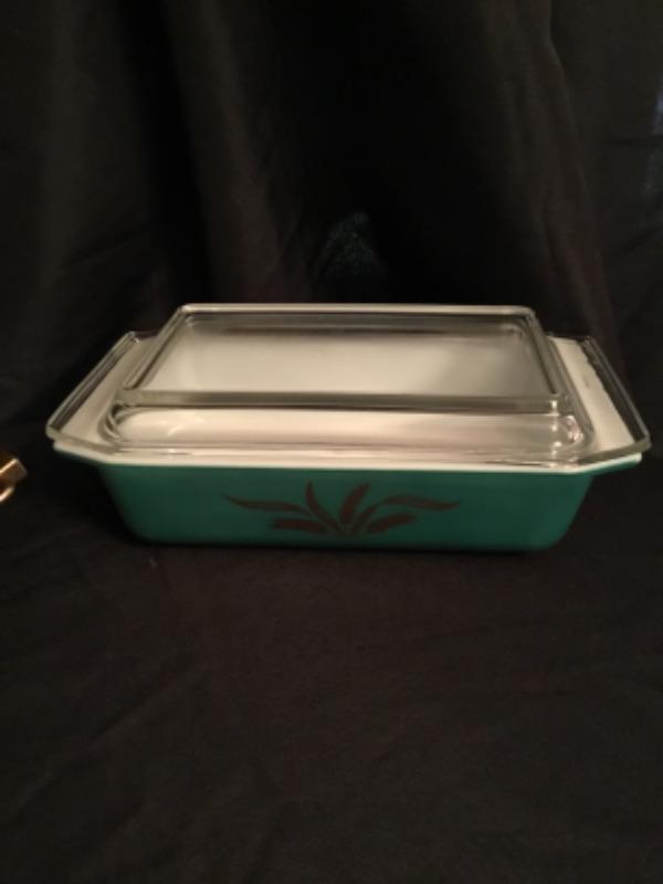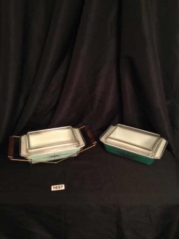 Vintage Pyrex baking dishes with lids, one with rack Lot 1657