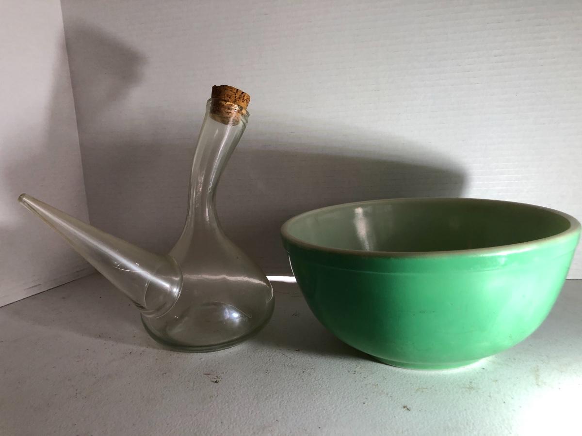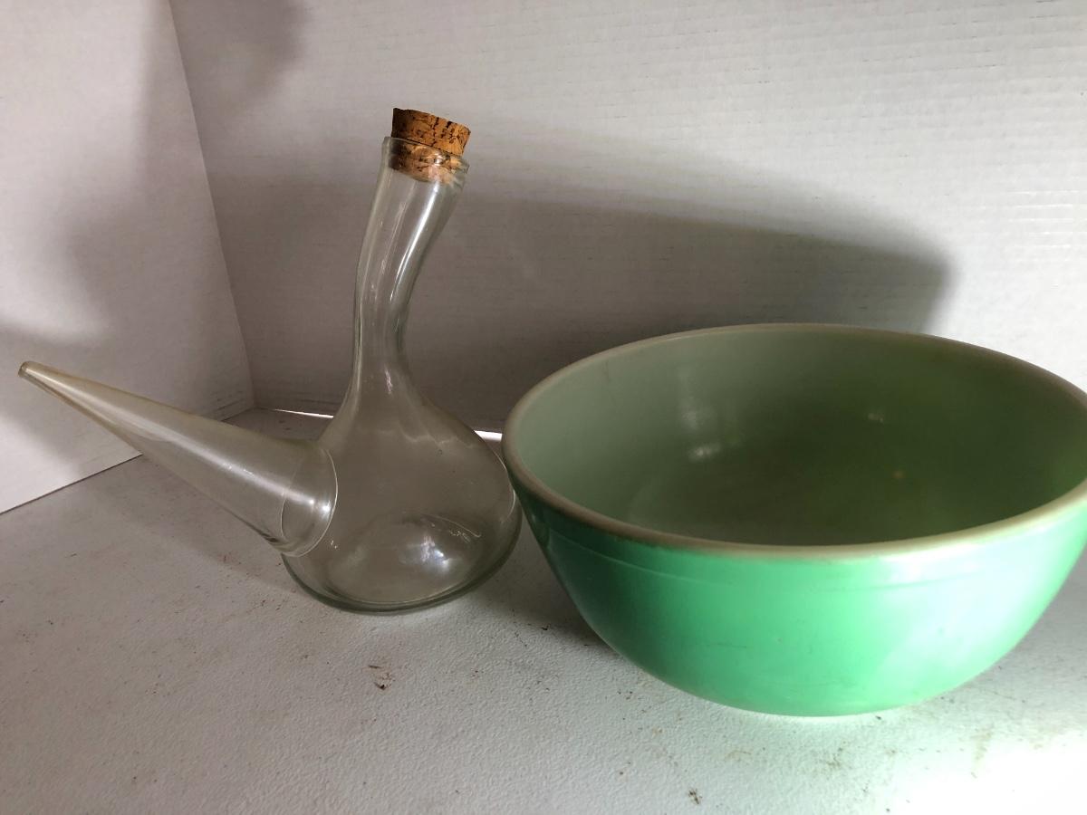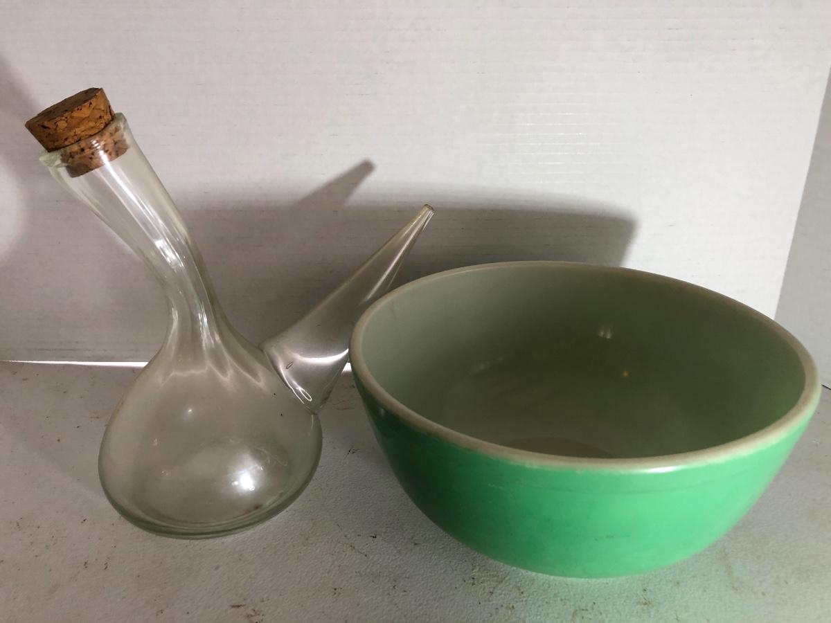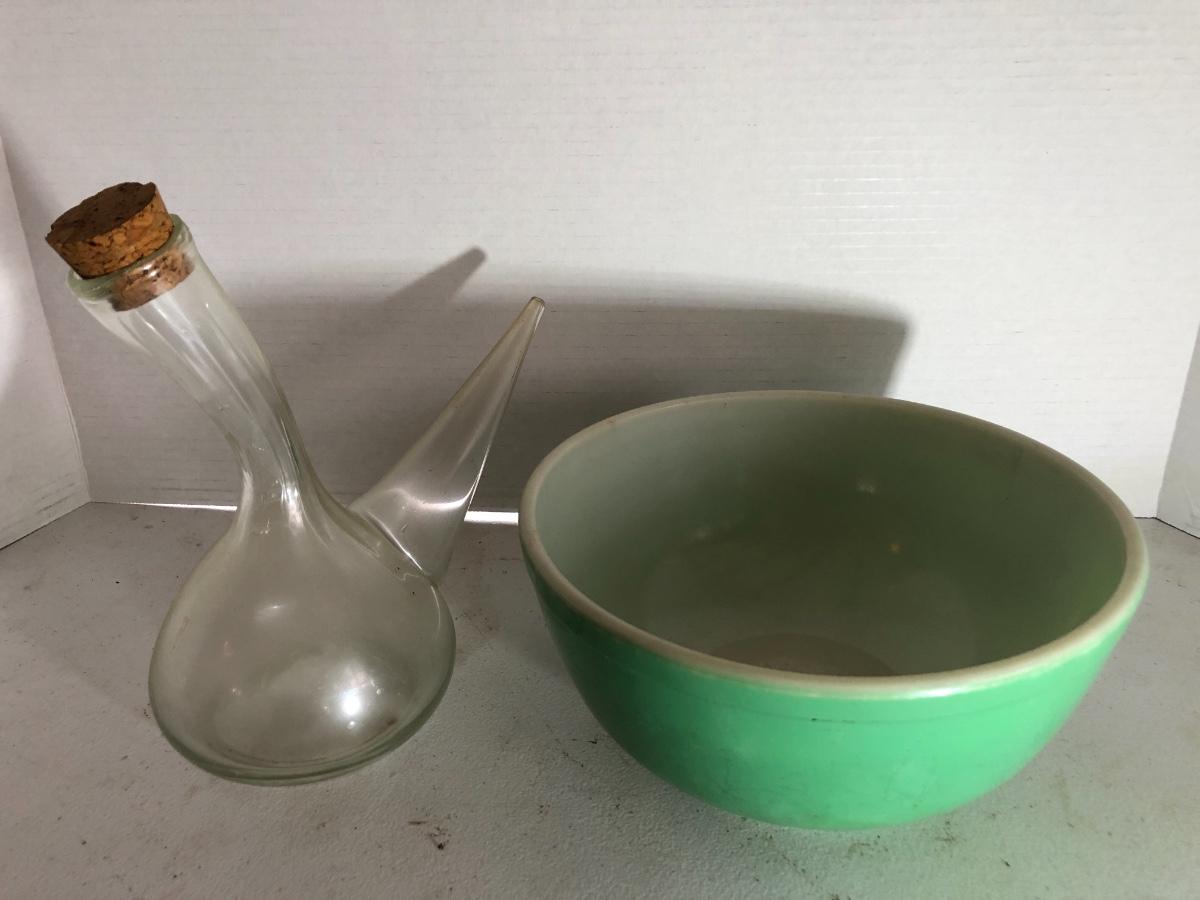 Vintage Pyrex Bowl & Spanish Hand Blown Decanter -Lot 223