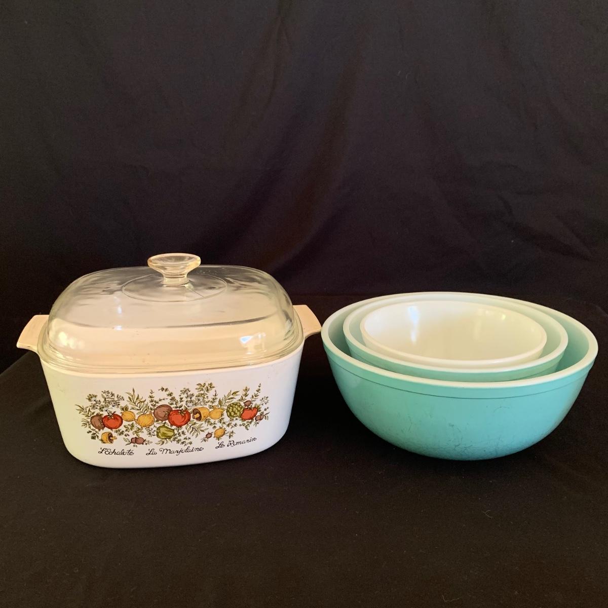 Vintage Pyrex Bowls & Corning Ware L’Echalote Casserole Dish (K-HS)