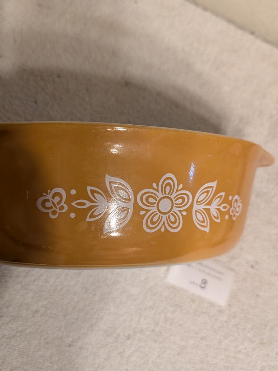 Vintage Pyrex Butterfly Gold 1.5 qt oval Casserole dish
