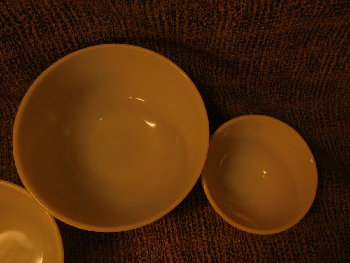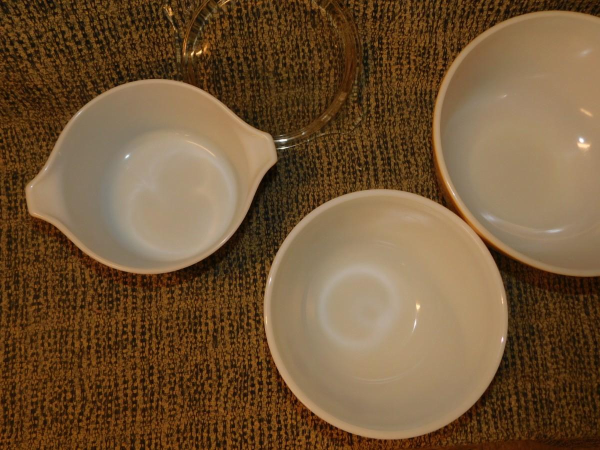 Comes with mixing bowls #'s 404, 402, 403, Covered Dish 473