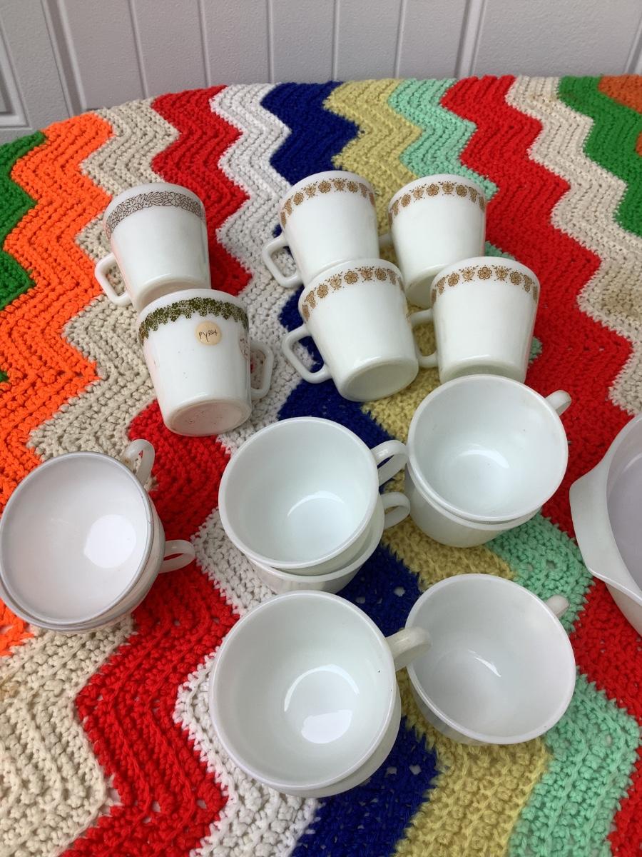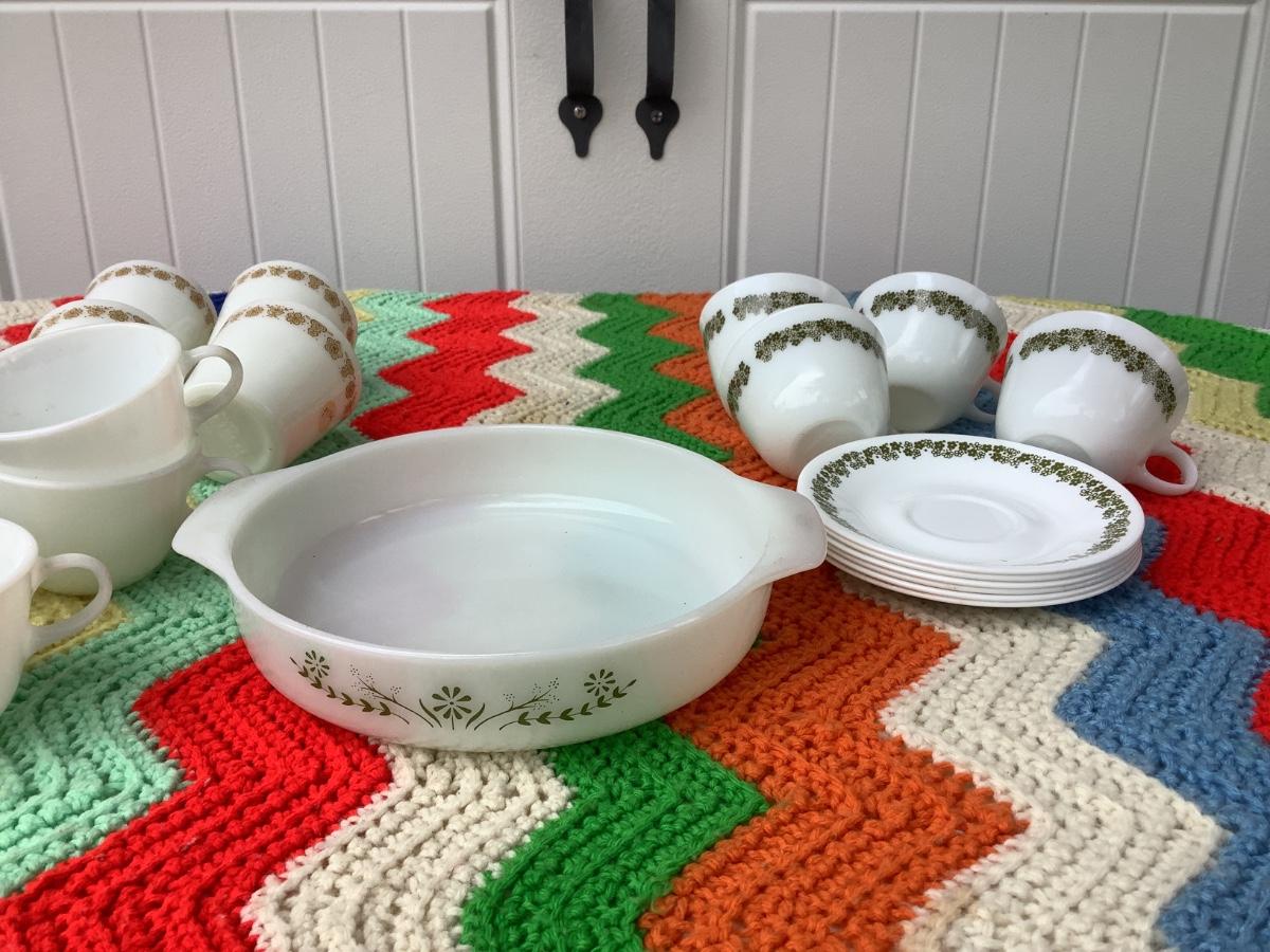 Vintage Pyrex & Corelle lot -milk glass Harvest Gold, Spring Blossom