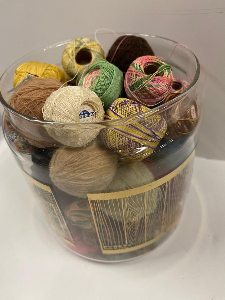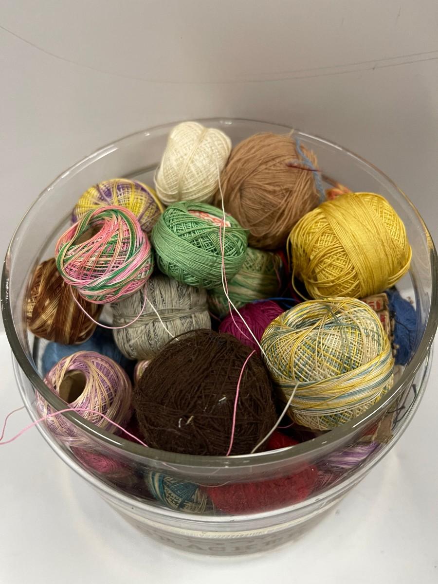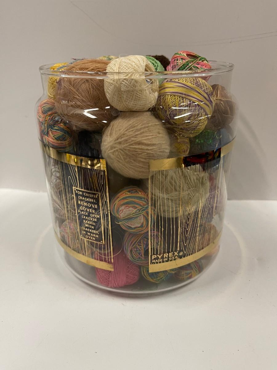 Vintage Pyrex Cracker Barrel Full of Fine Cotton Yarn/Embroidery Floss