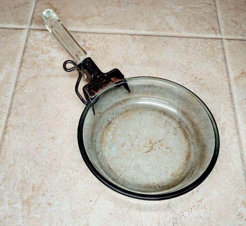 VINTAGE PYREX FLAME WARE GLASS HANDLE W/ PIE PLATE