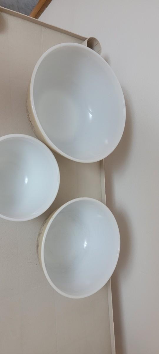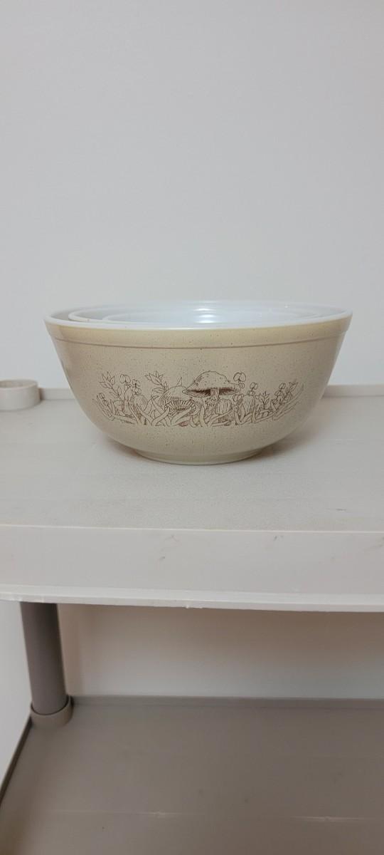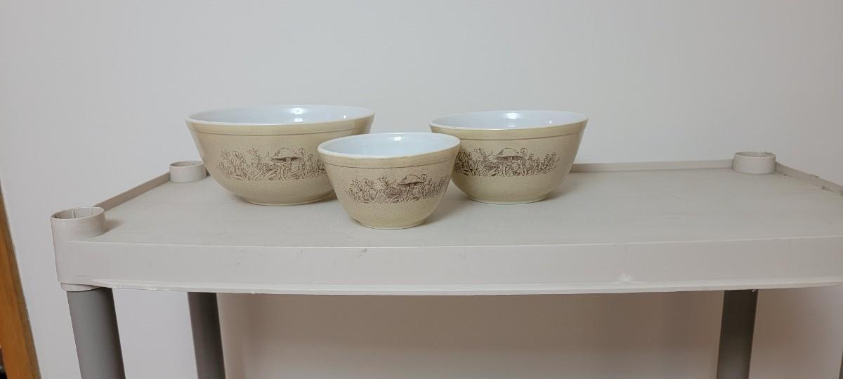 Vintage Pyxex set of three stacking bowls mushroom pattern