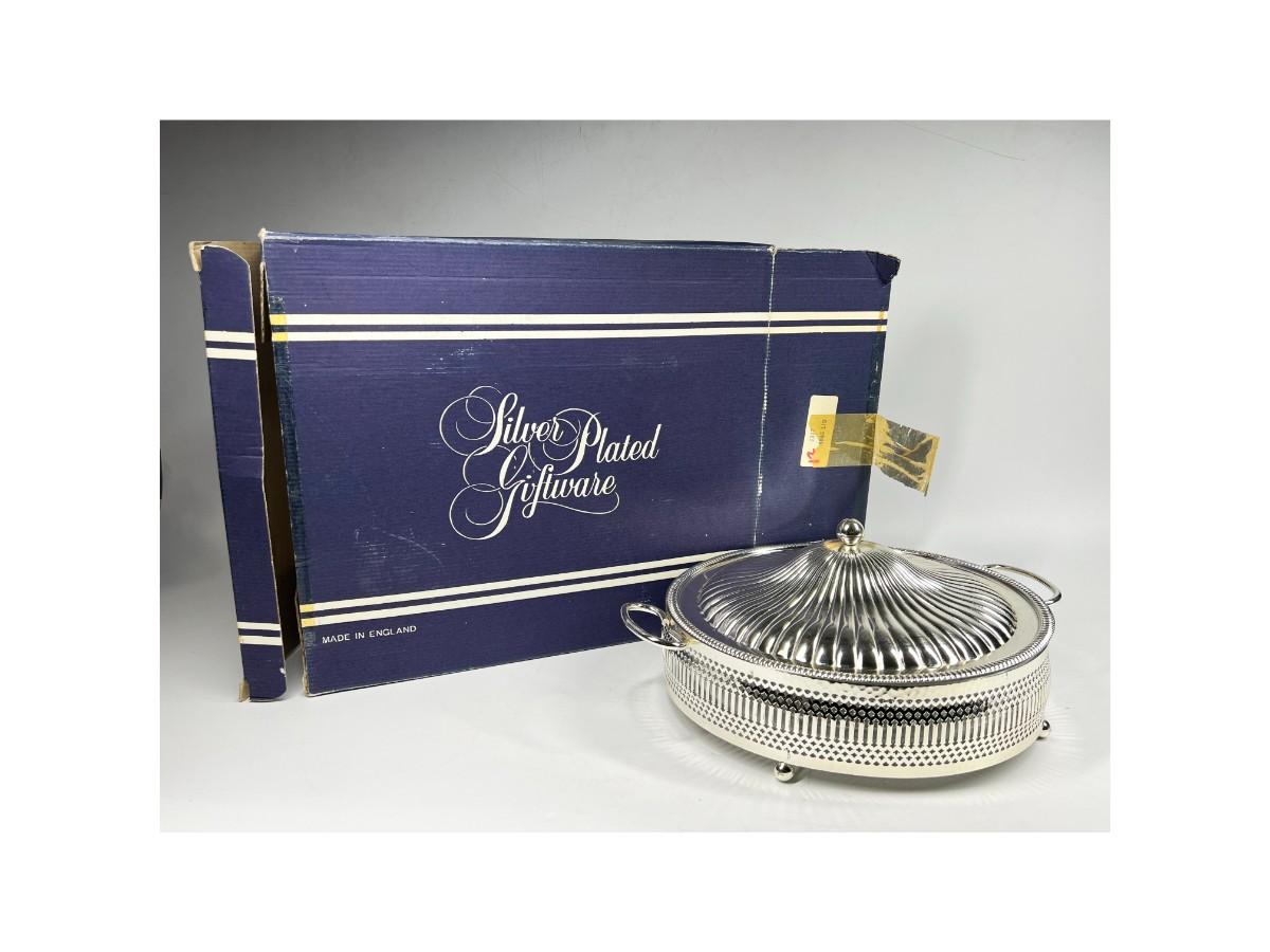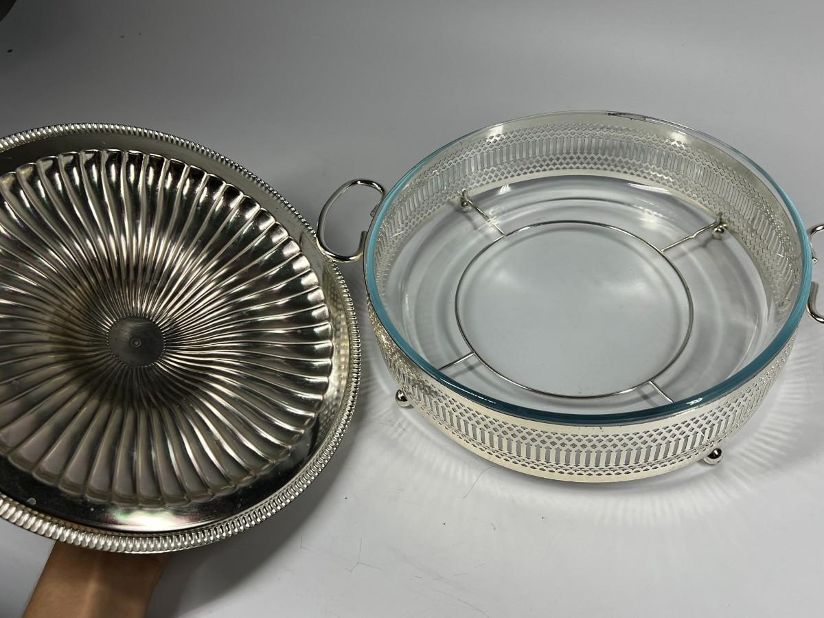 Vintage Pyrex Serving Dish Silver Plated Giftware Holder with Original Box