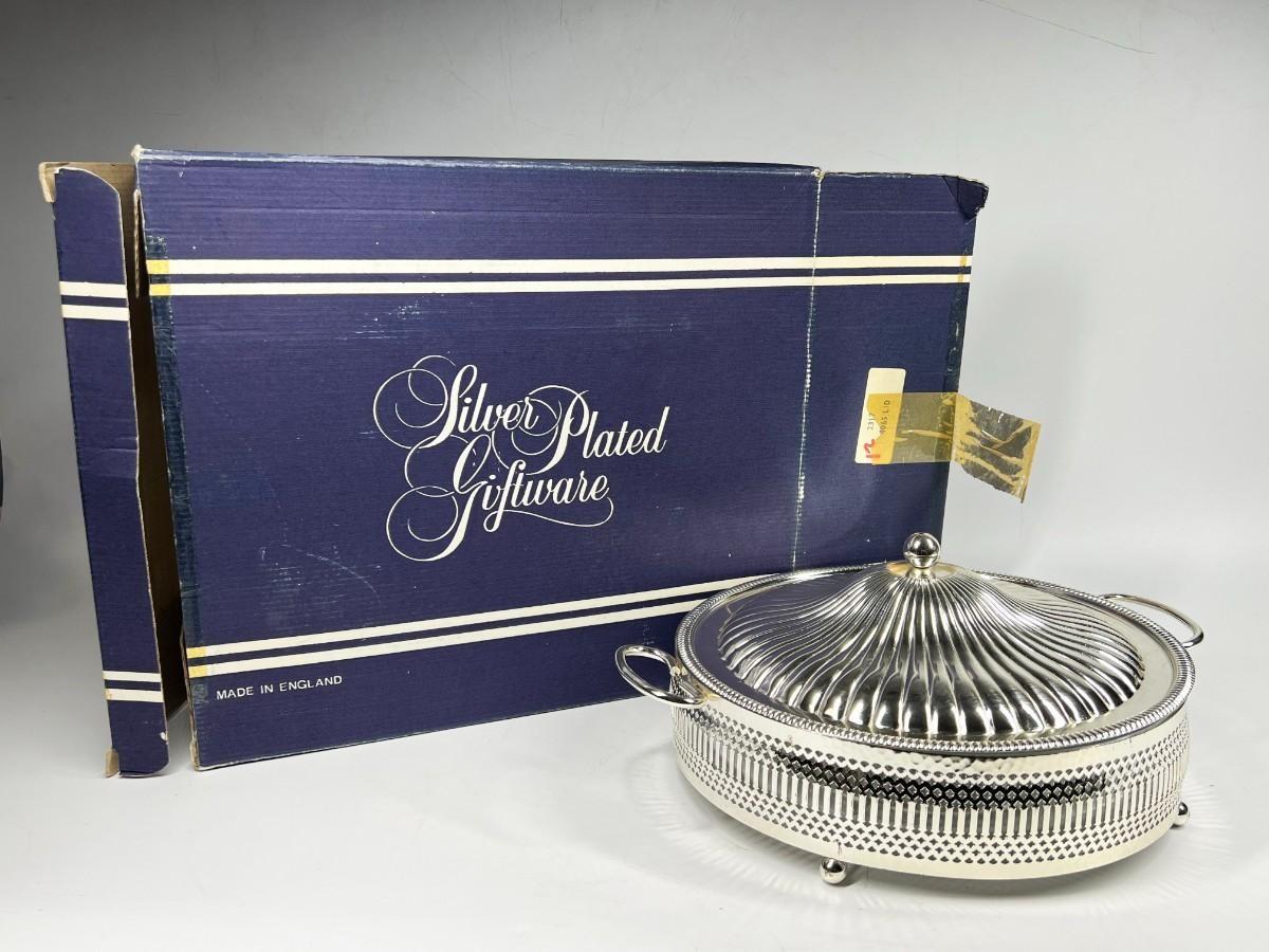Vintage Pyrex Serving Dish Silver Plated Giftware Holder with Original Box