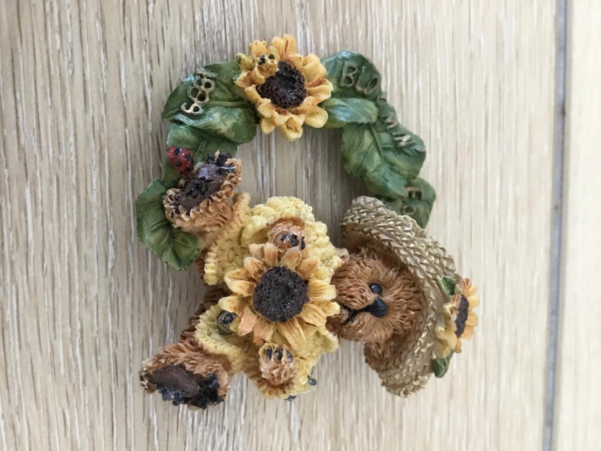 Vintage QC marked wooden brooch