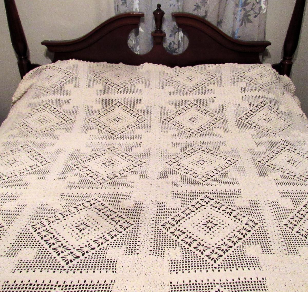 BEAUTIFUL Vintage QUEEN SIZE Crocheted Bedspread Nice Shape, Lovely Pattern