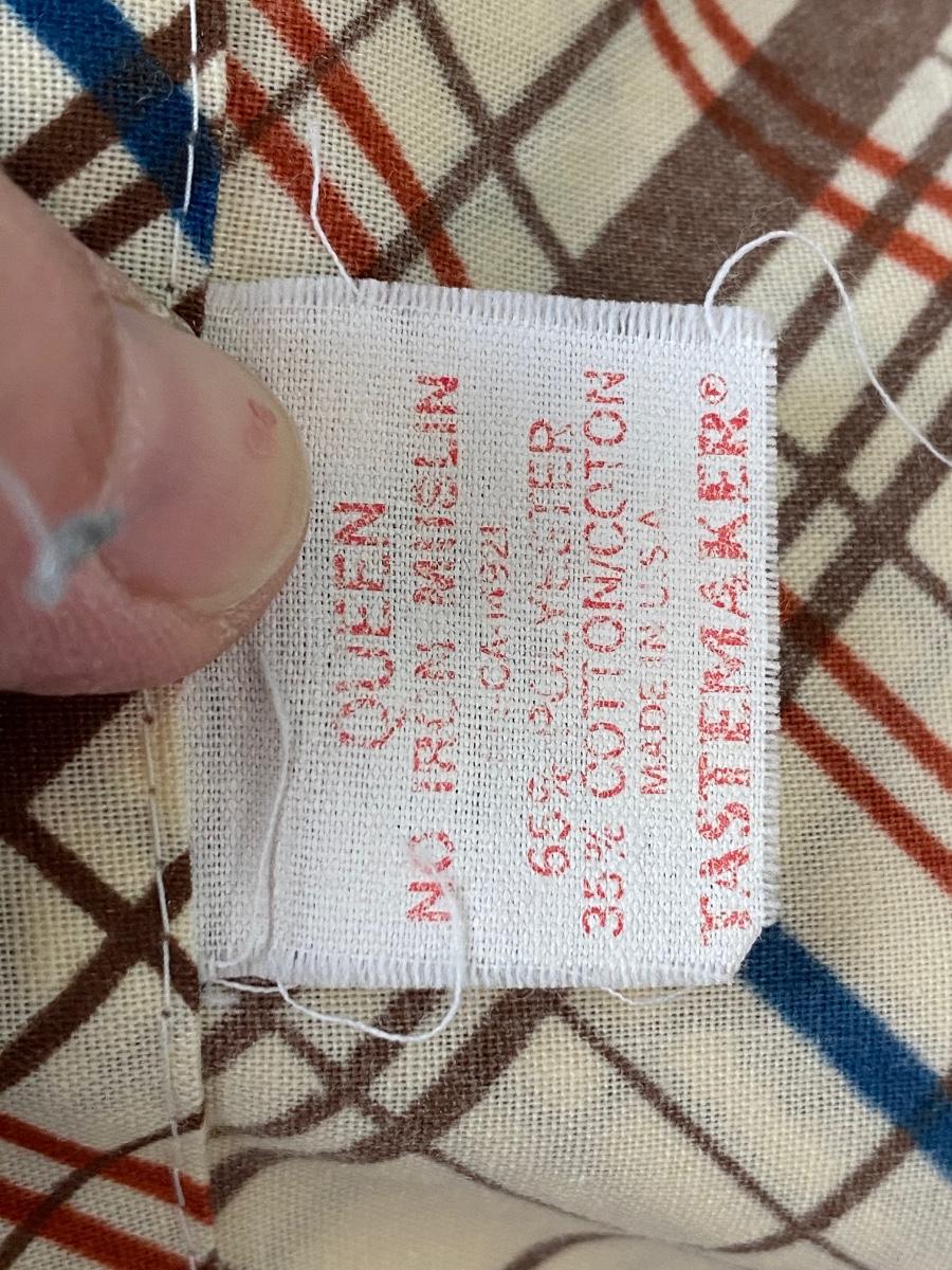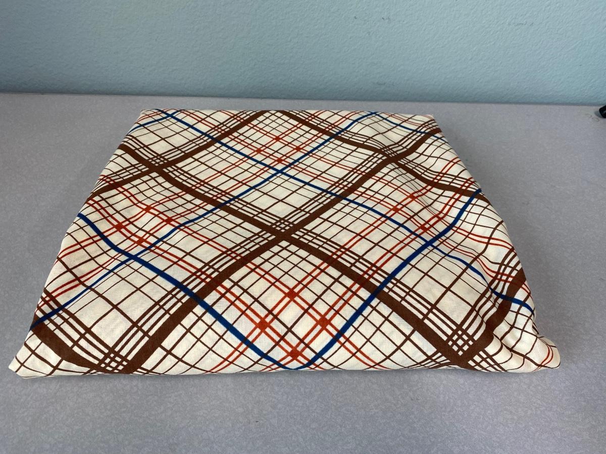 Vintage plaid fitted sheet. Queen size, elastic is still in fair condition. No spots or holes.