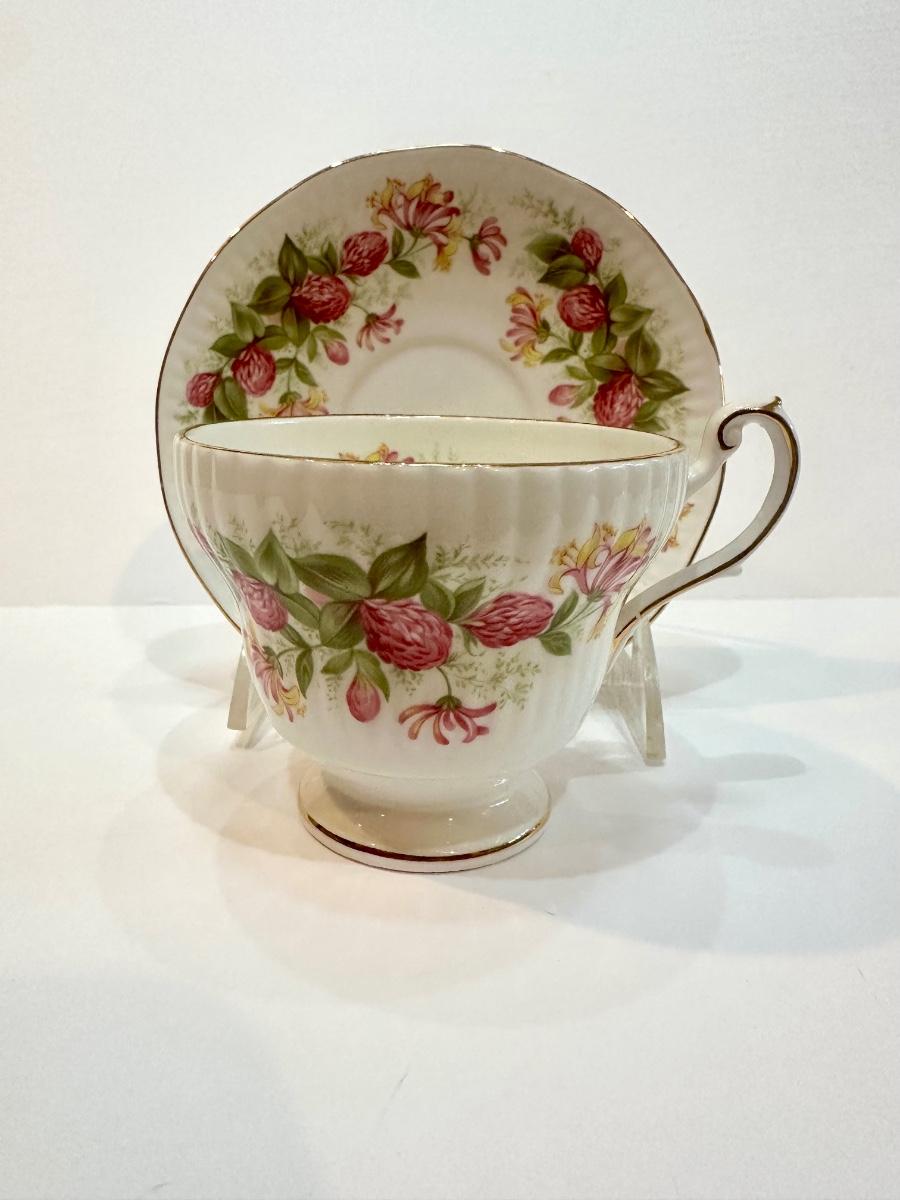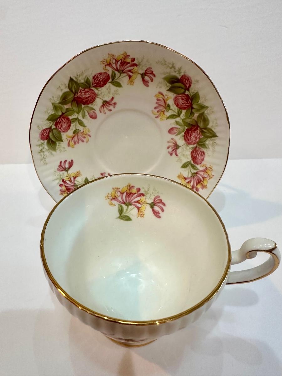 Fine bone China teacup with matching saucer. Stunning, vibrant colors. Made in England