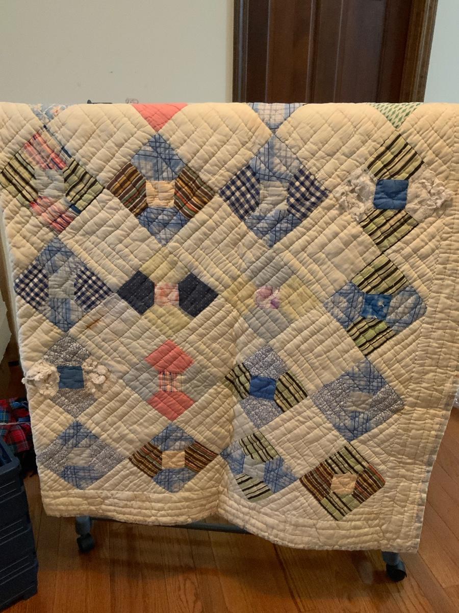 Vintage quilt 68“ x 60“. Block pattern. Hand quilted.