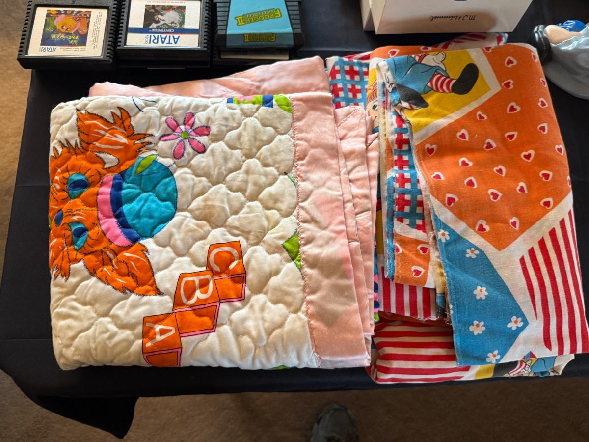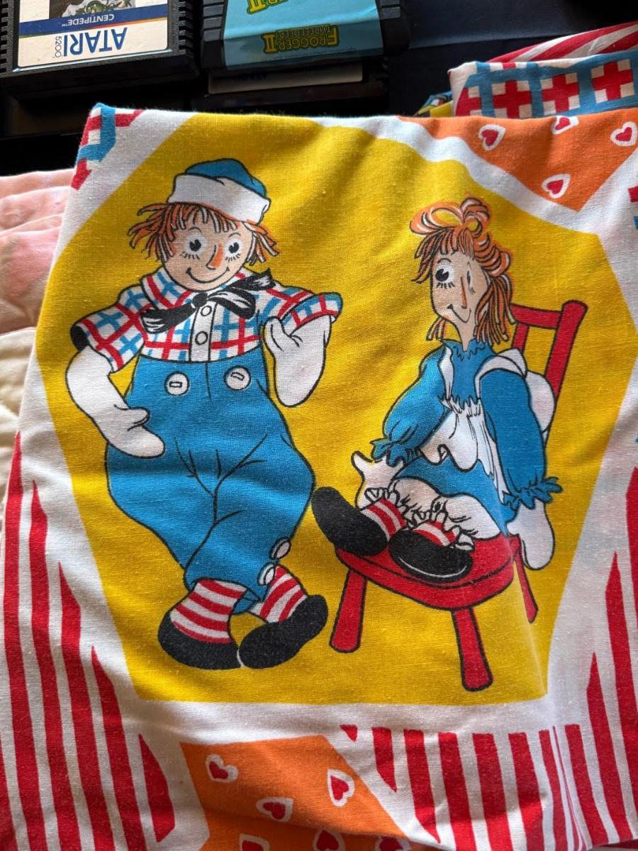 Vintage colorful Quilt & linens - Raggedy Ann & Andy & cute animal themed