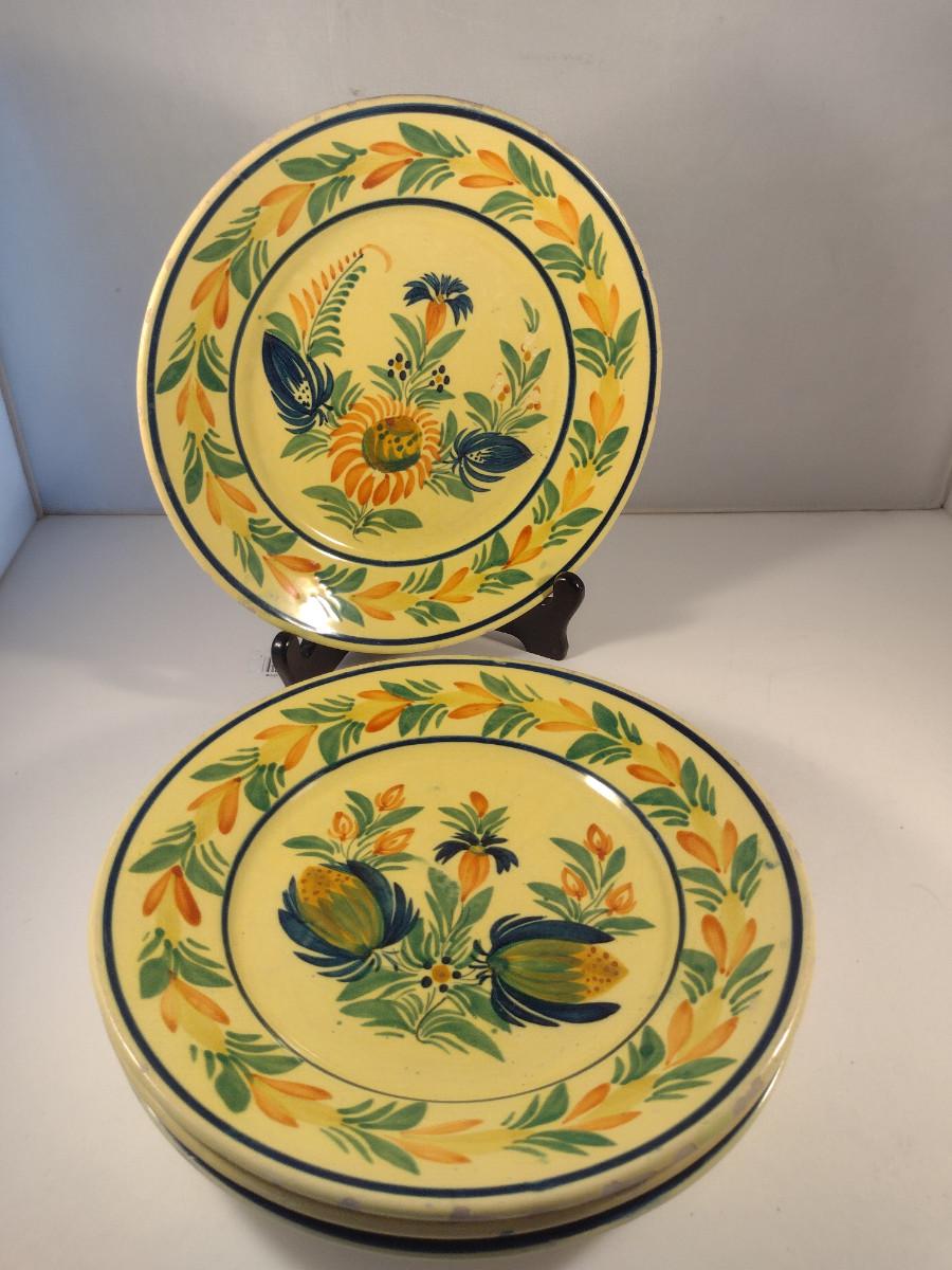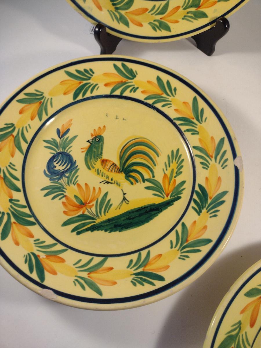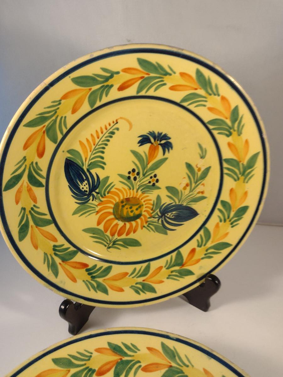 Vintage HB Quimper France Plates- Set of Four- Approx 9 5/8" in Diameter