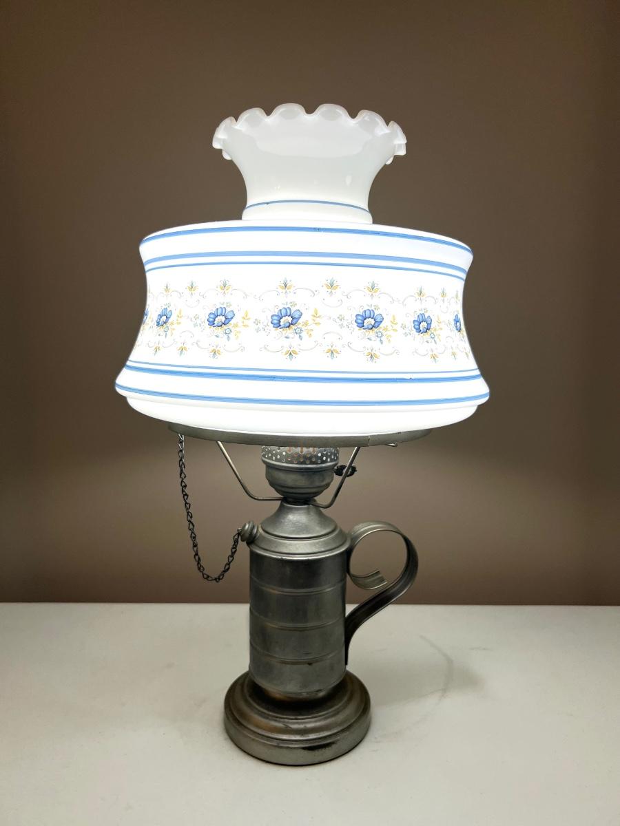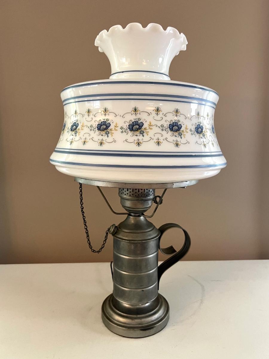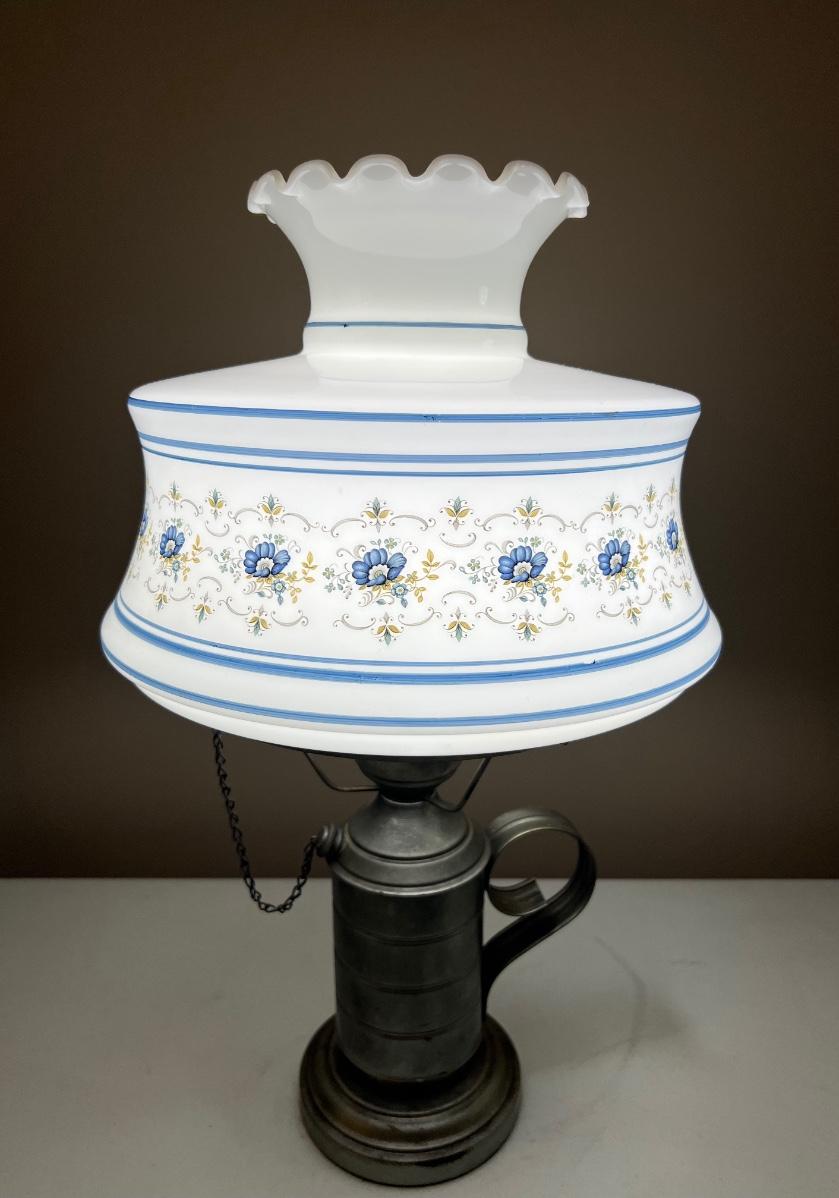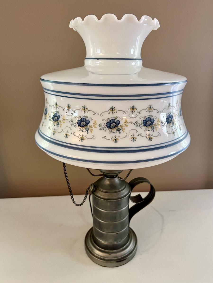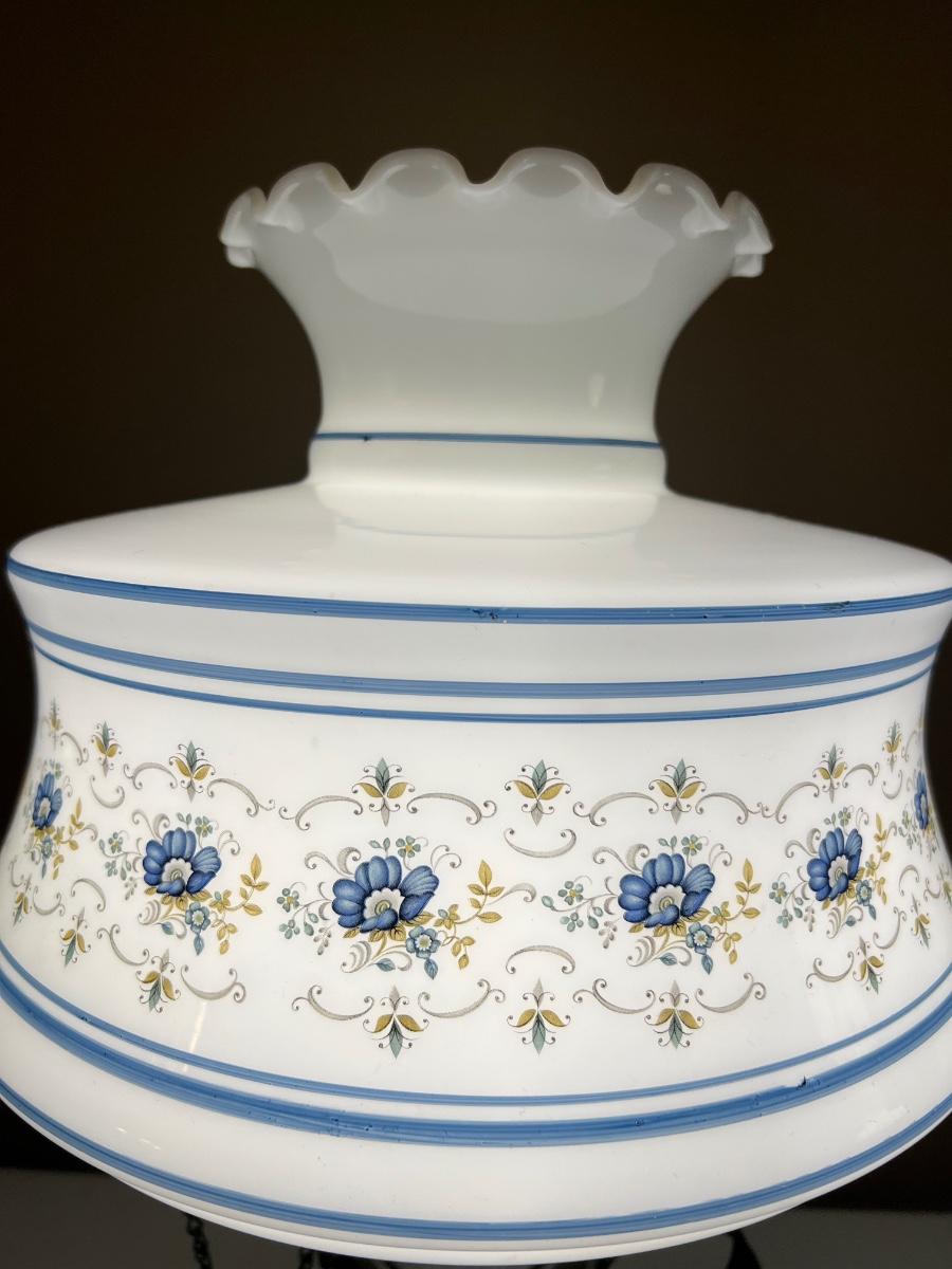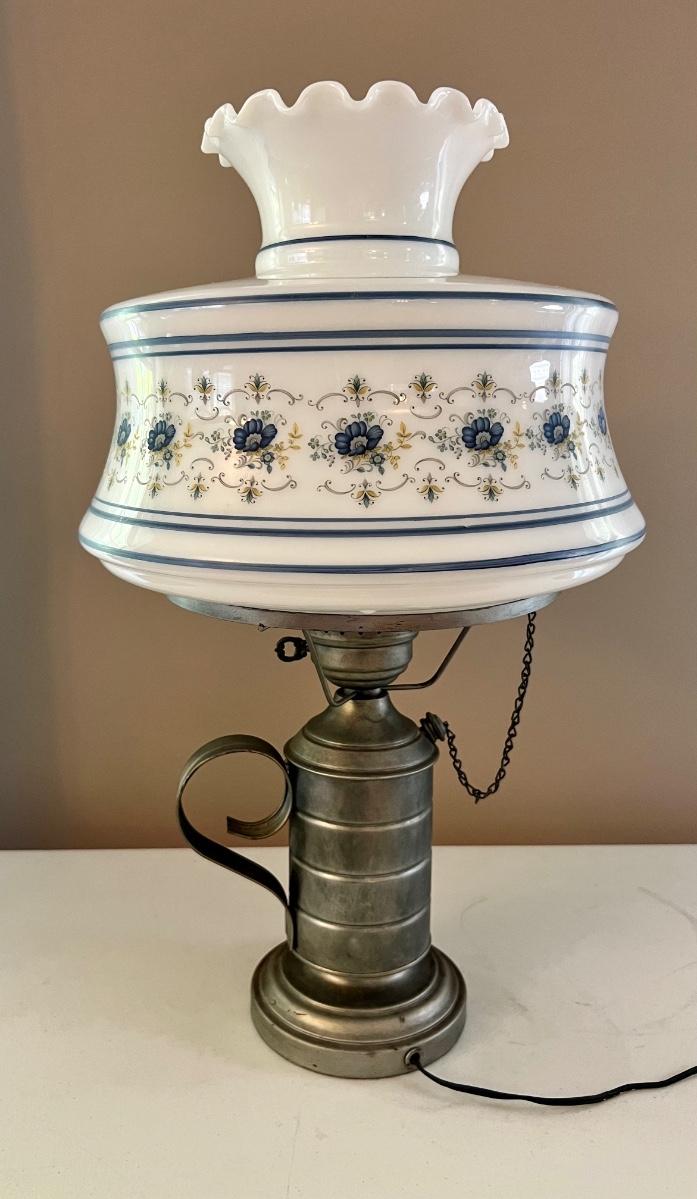 Vintage Quoizel Abigail Adams Milk Glass Globe, Table Lamp. Measures 23 inches tall and 15 inches wide