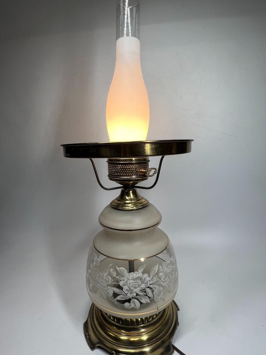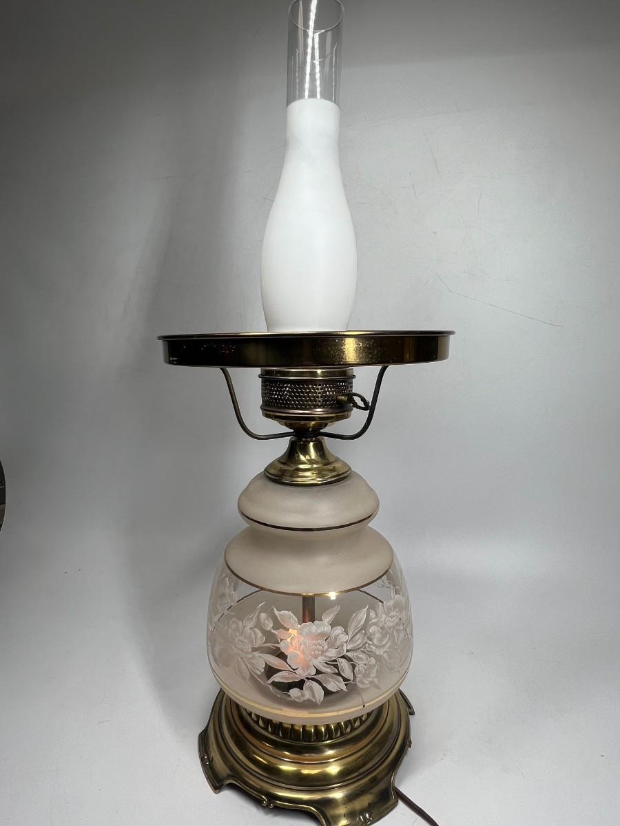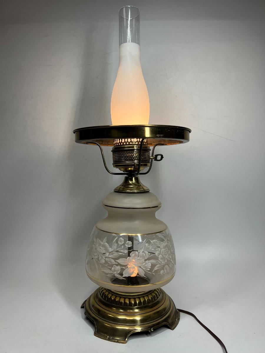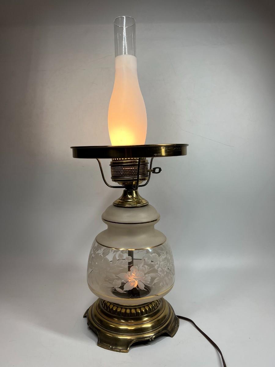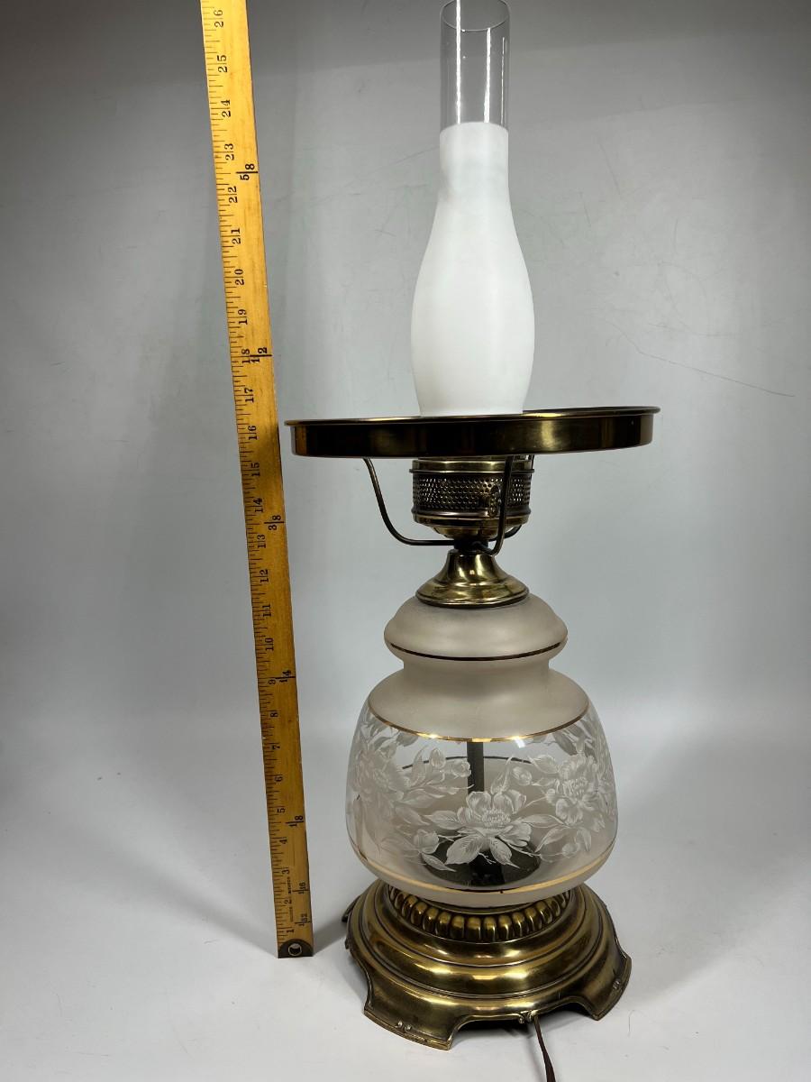 Table Lamp Vintage Quoizel Satin Gold Lace Hurricane American West Gone with the Wind
