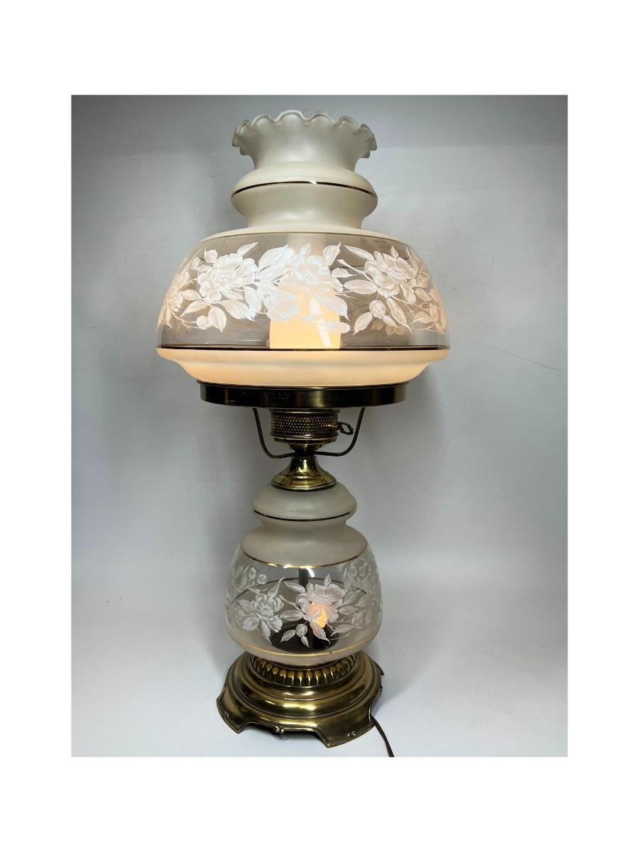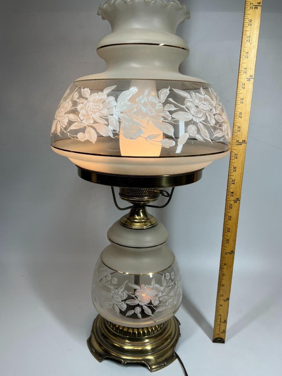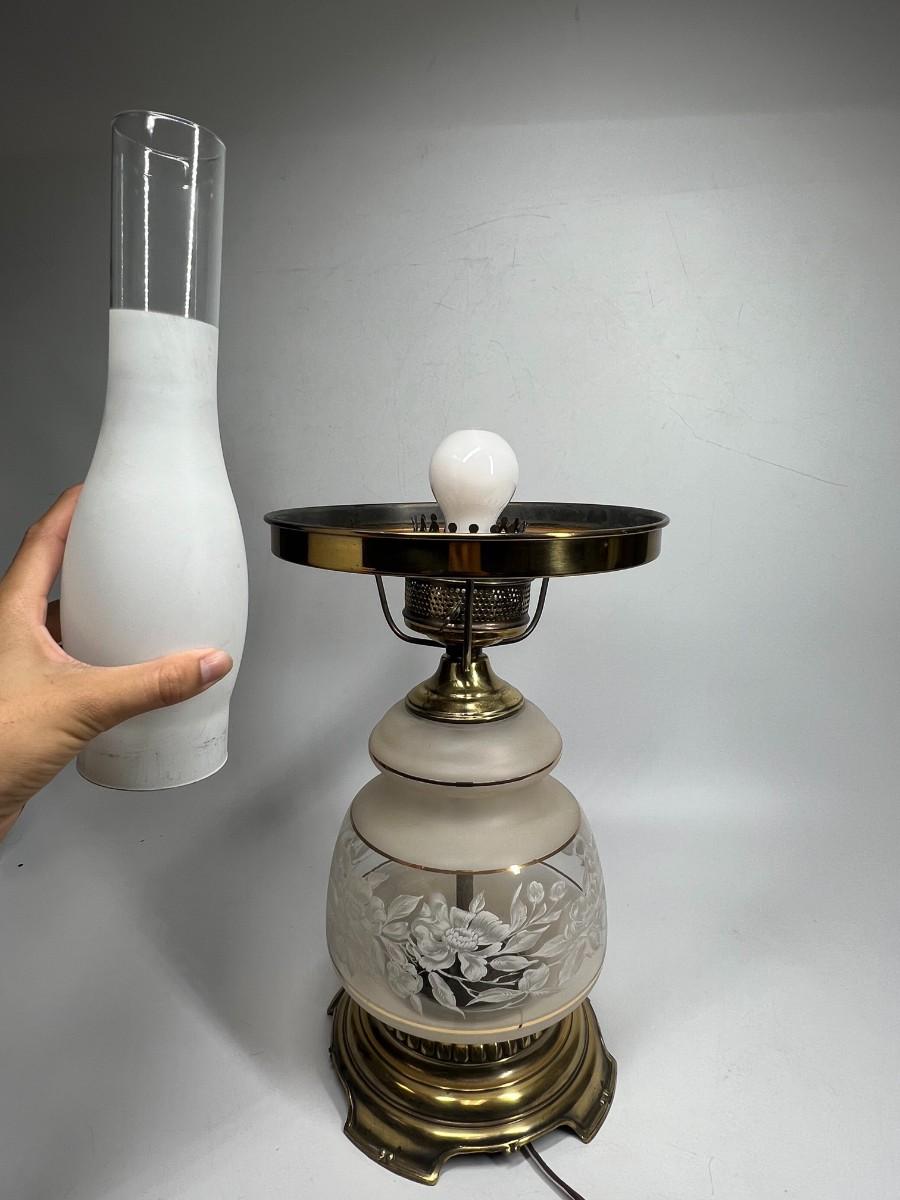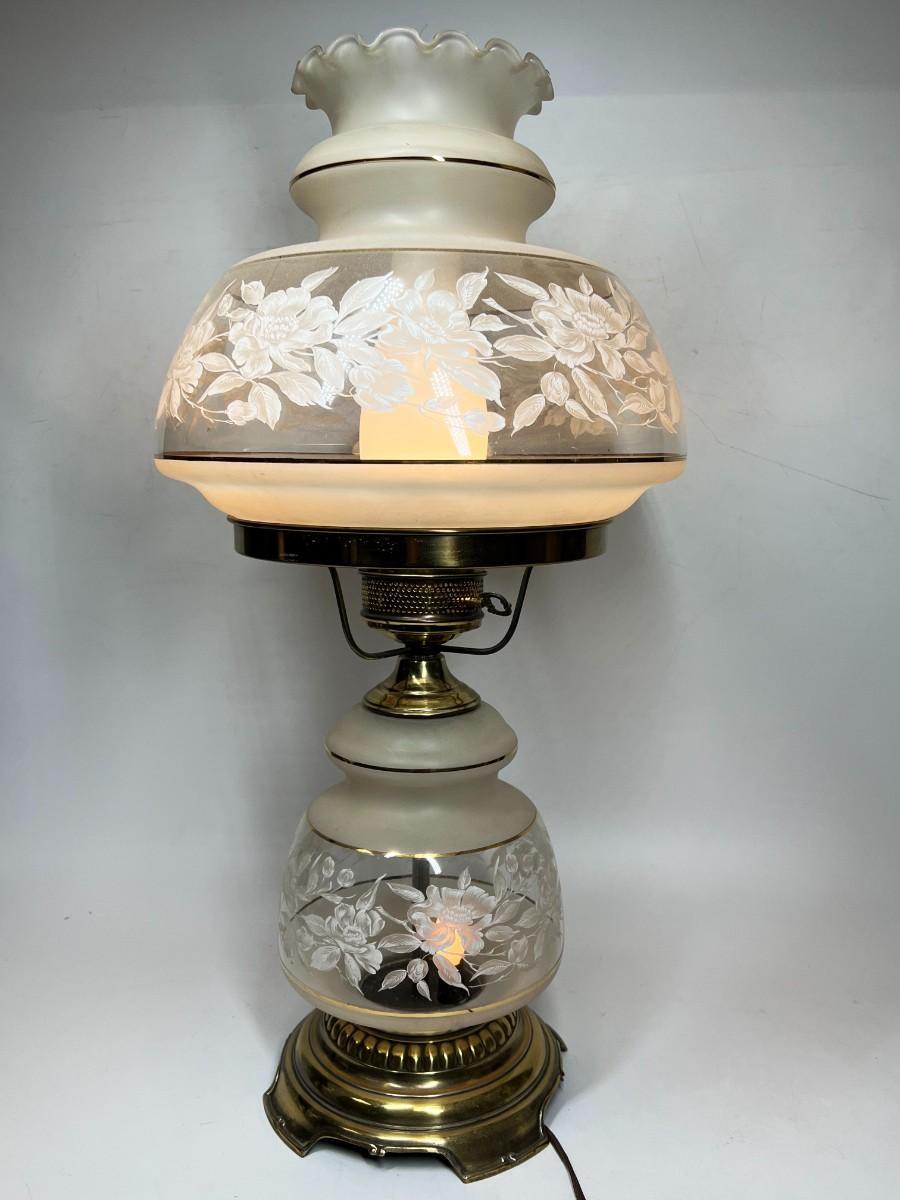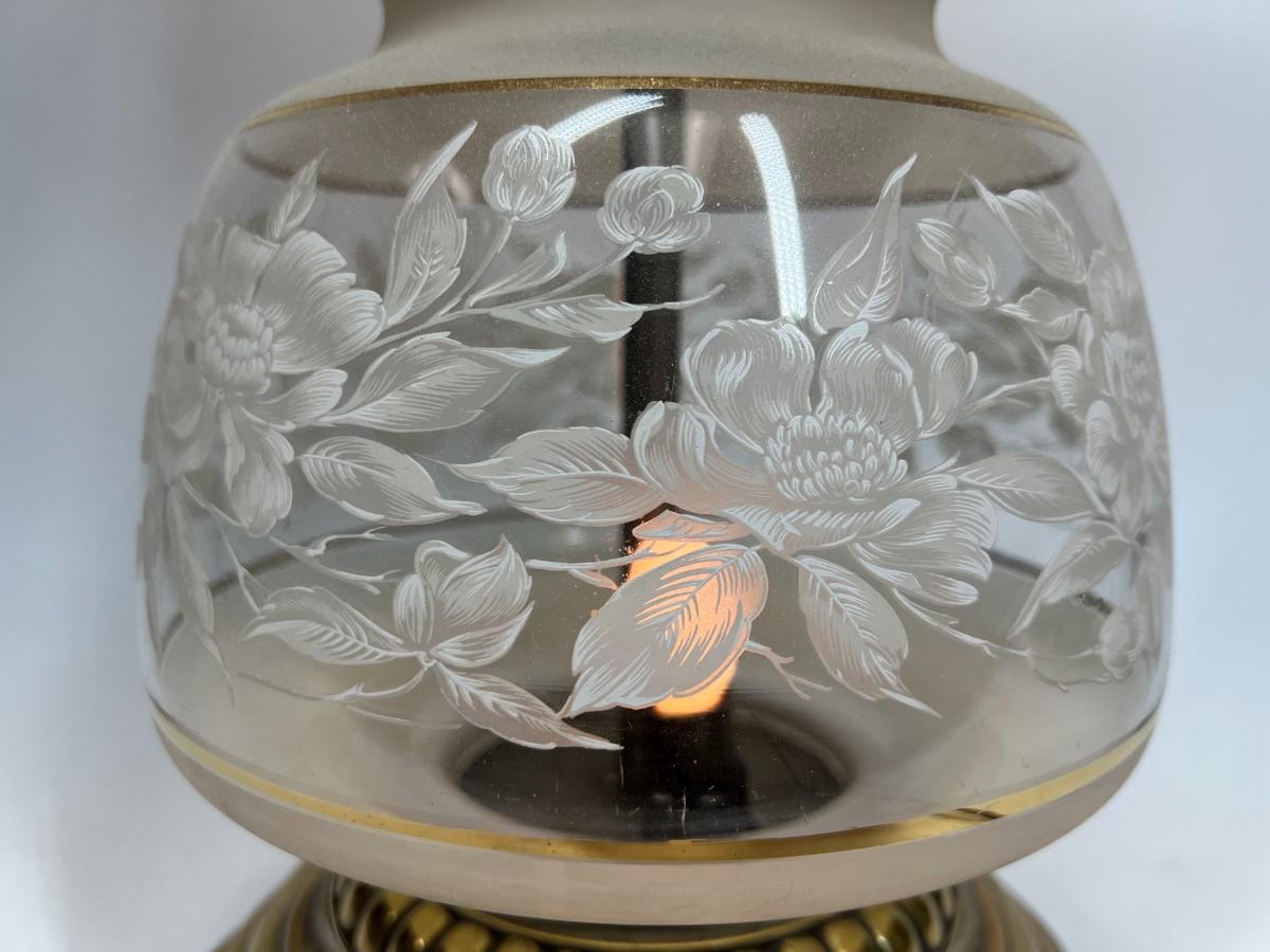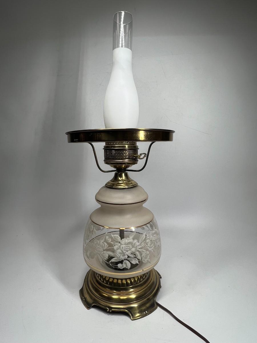 Table Lamp Vintage Quoizel Satin Gold Lace Hurricane American West Gone with the Wind