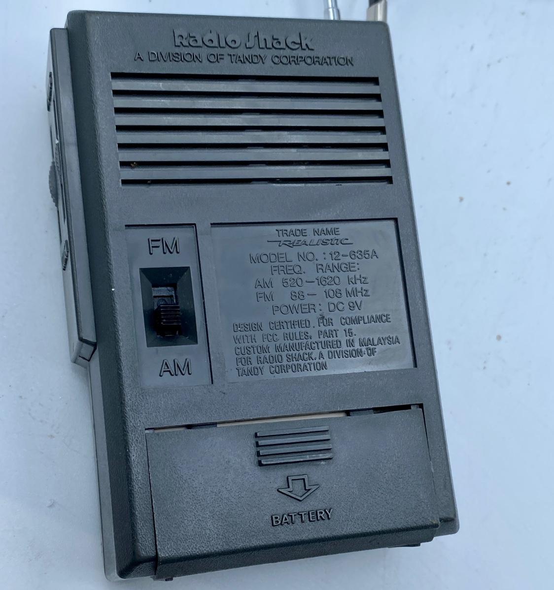 REALISTIC Model No.: 12-636A, Replaced battery, works fine, clean excellent condition, telescoping antenna . 5 x 3.5 “