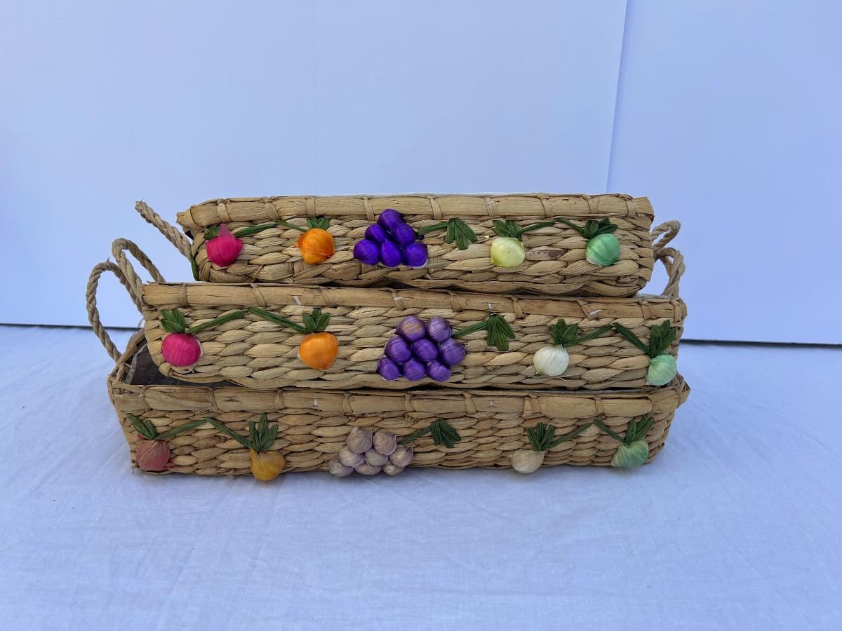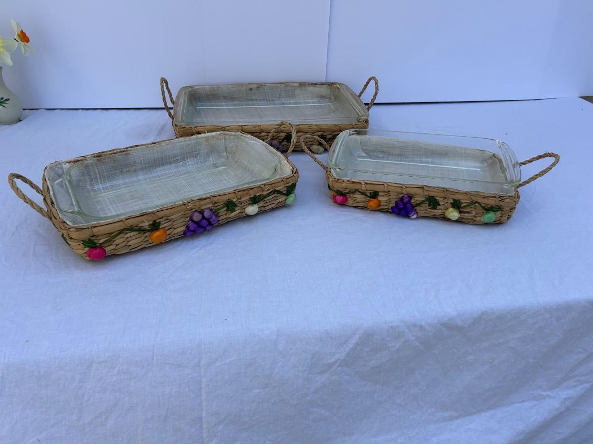 Three hand woven baskets to carry your Pyrex baking dishes.