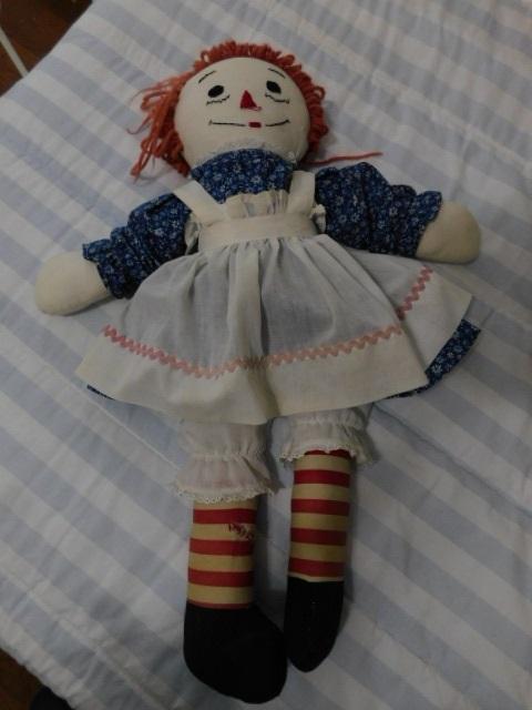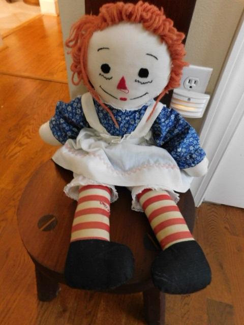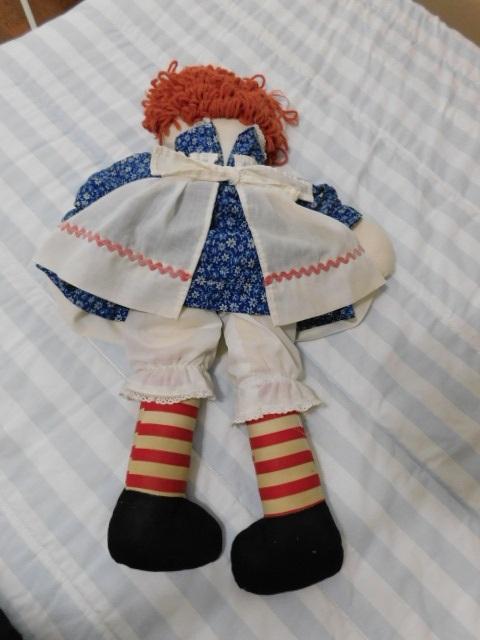 Vintage Raggedy Ann Doll 24" has stitch repair on leg as shown