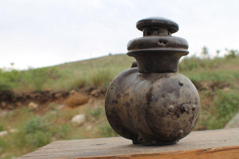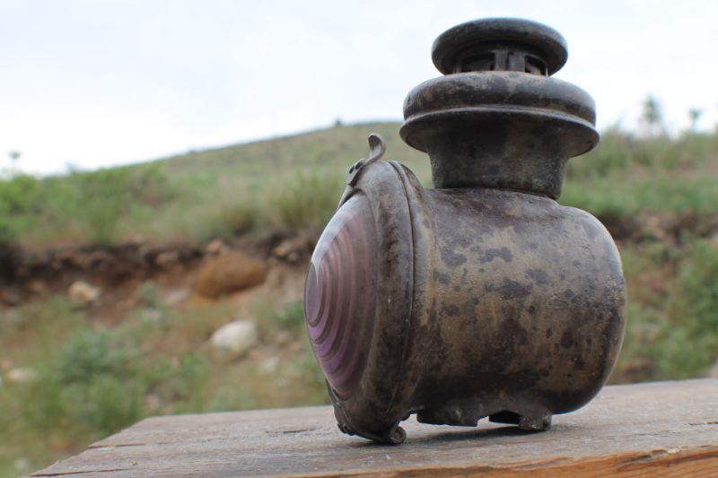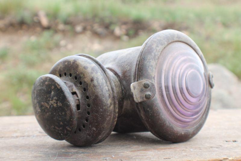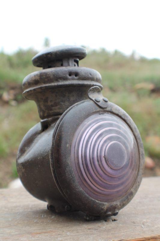 Lot #33: Vintage Railroad Light w/ Original Purple Glass Shade (Graduating Circles Design)