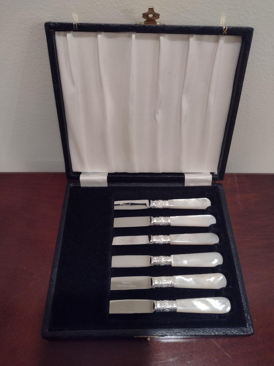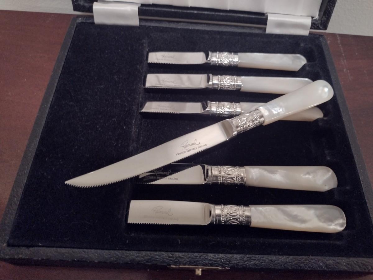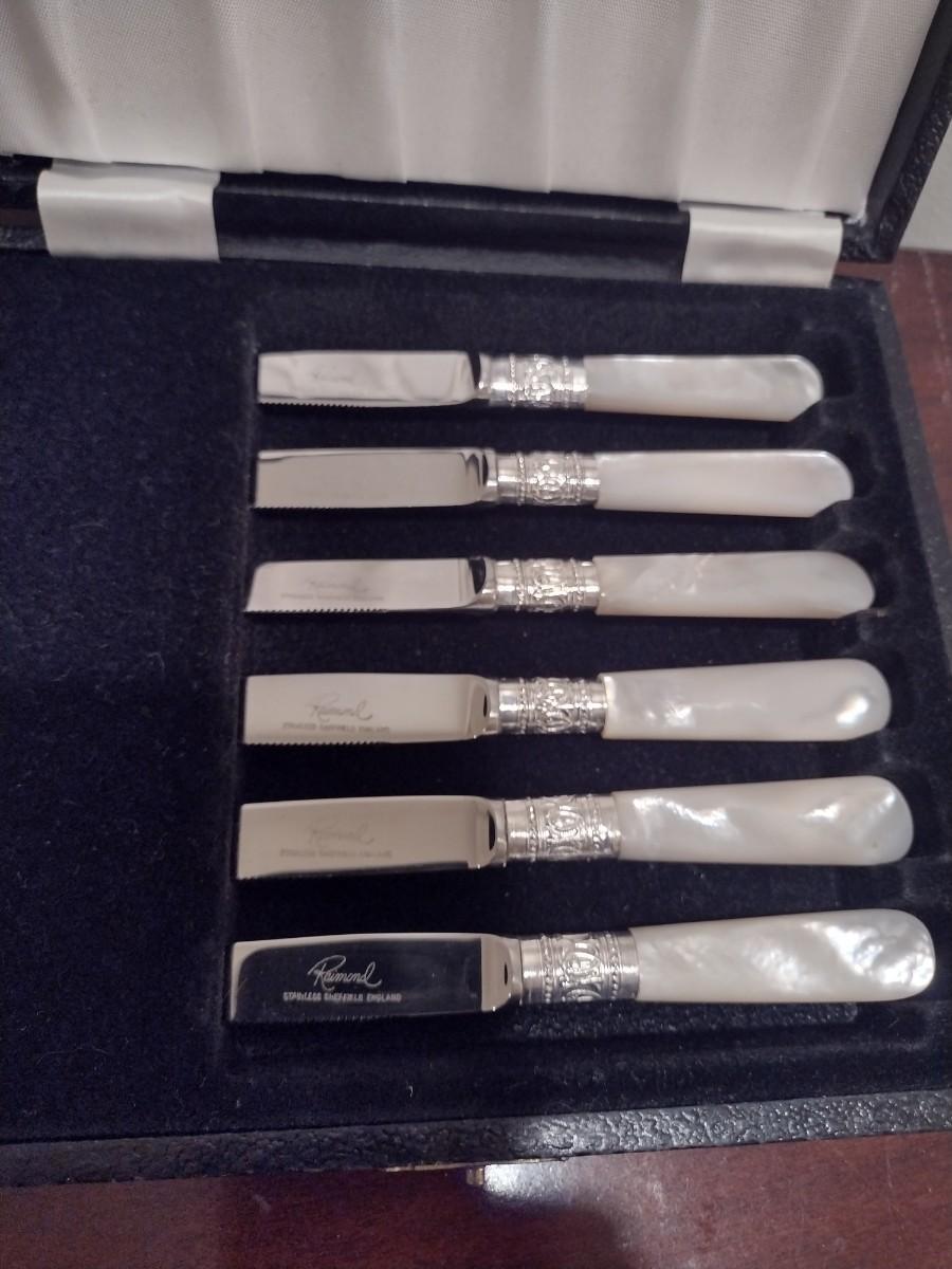 Vintage Raimond Sheffield, England Mother of Pearl Handled Cutlery Set in Box