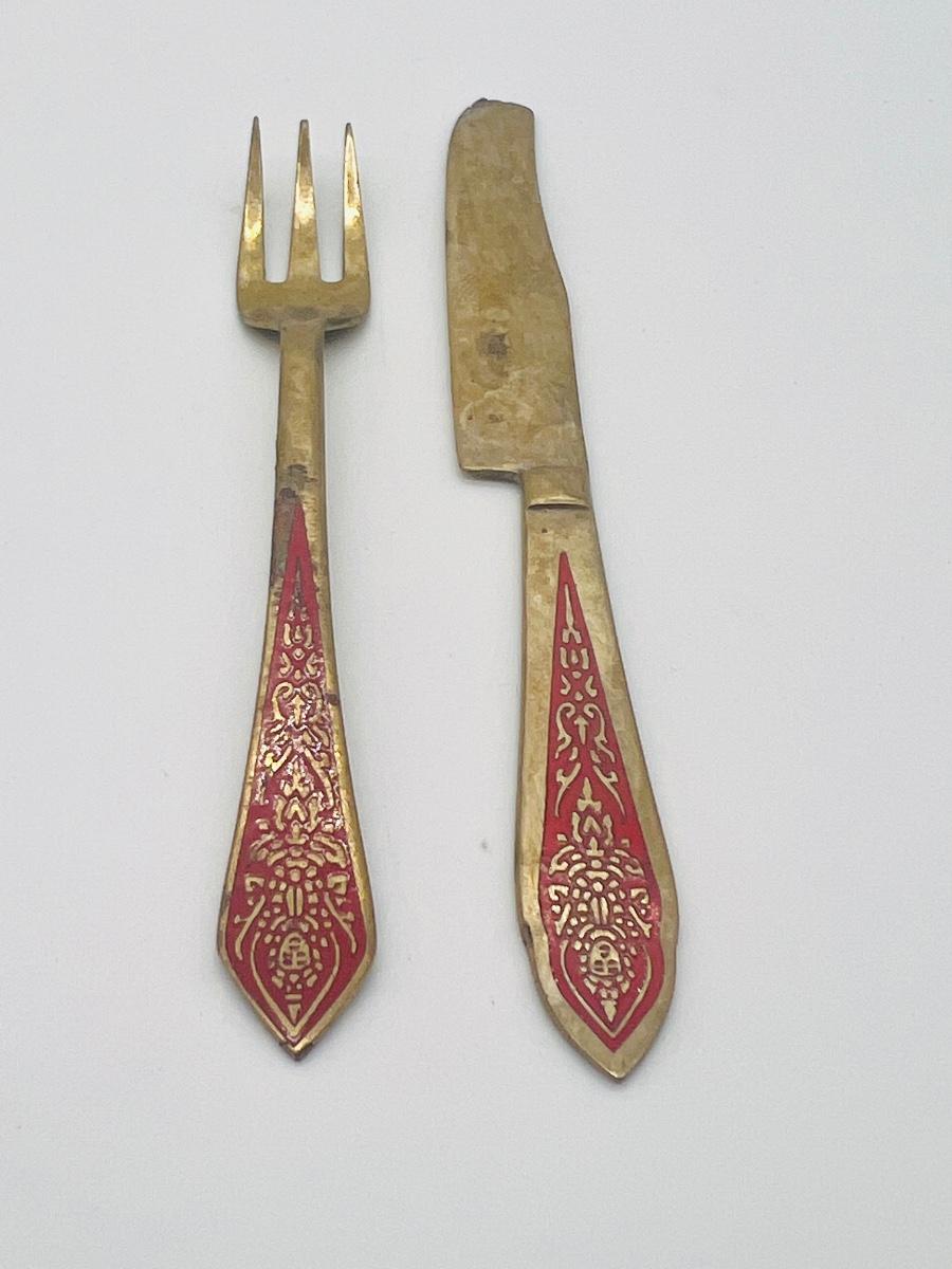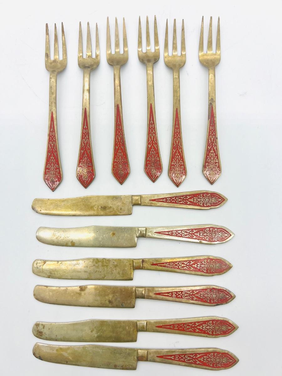 12 pieces of Vintage Brass Rama Jewelry Appetizer/Hor D'ourves flatware Made In THAILAND