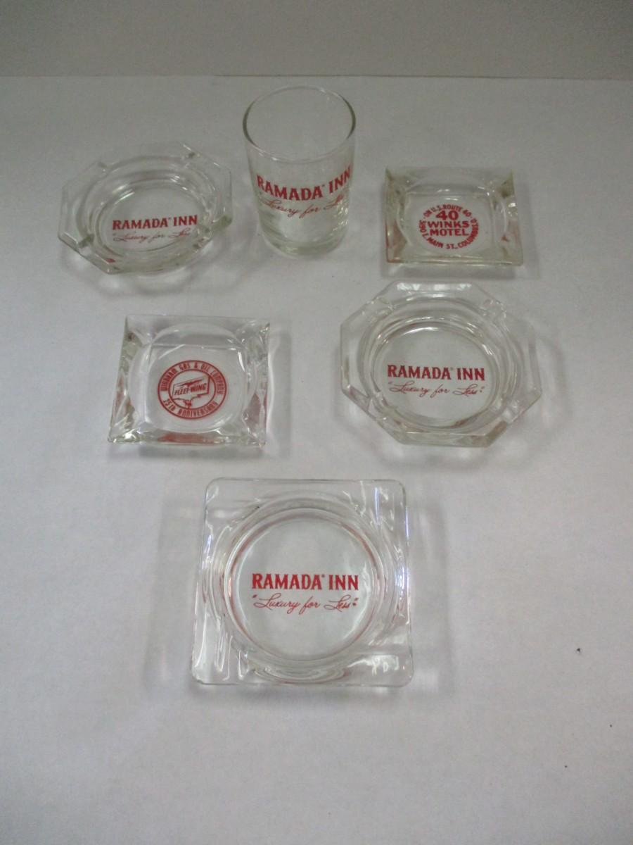 Vintage Ramada Inn Ashtrays & Glass Fleet Wing 40 Winks Motel U.S. Rout 40