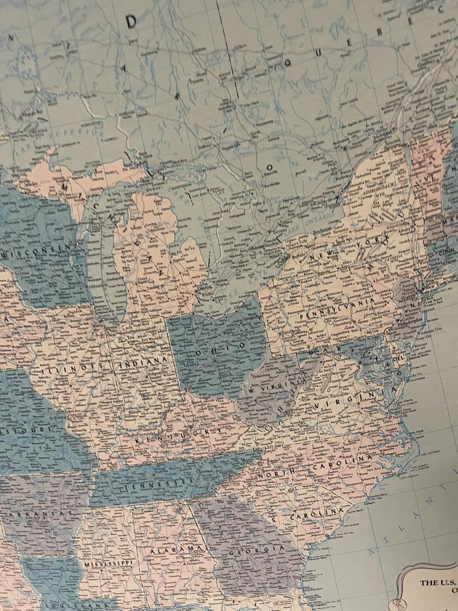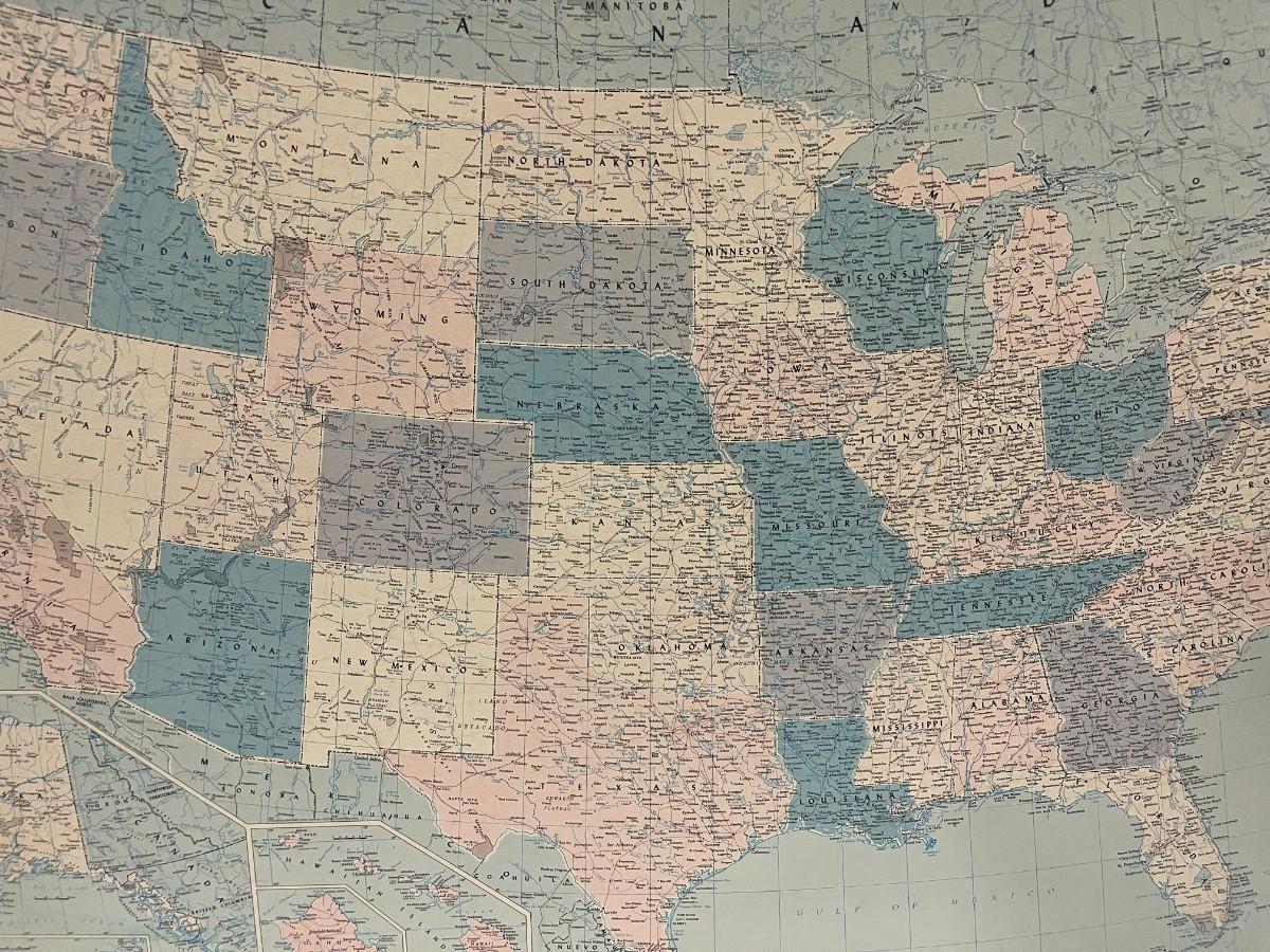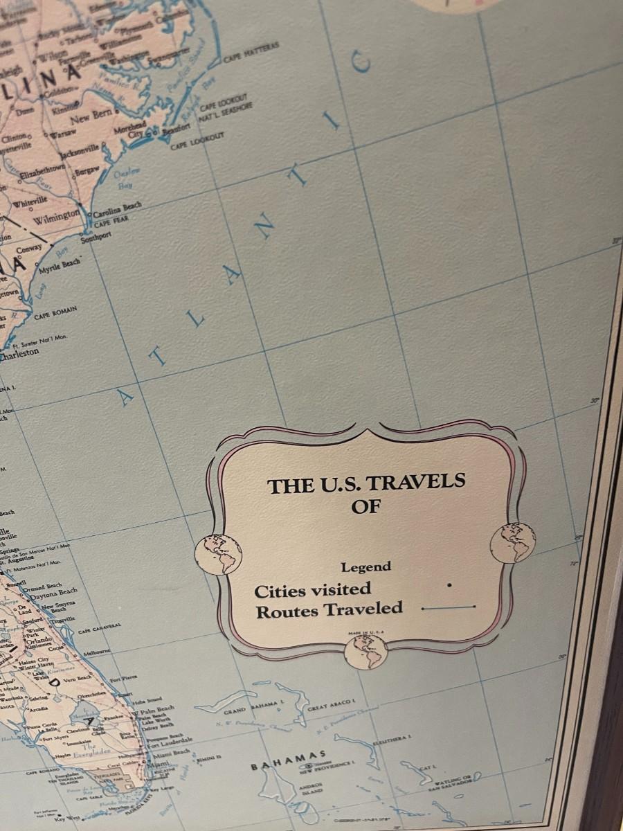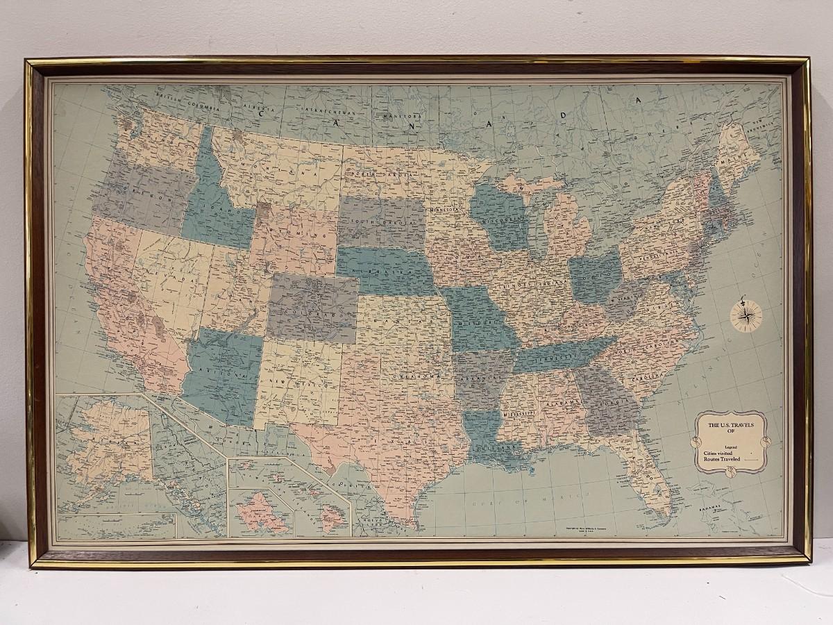 Vintage Rand McNaly US travels map to record your travels throughout the US. 31 1/2" x 20 1/2"
