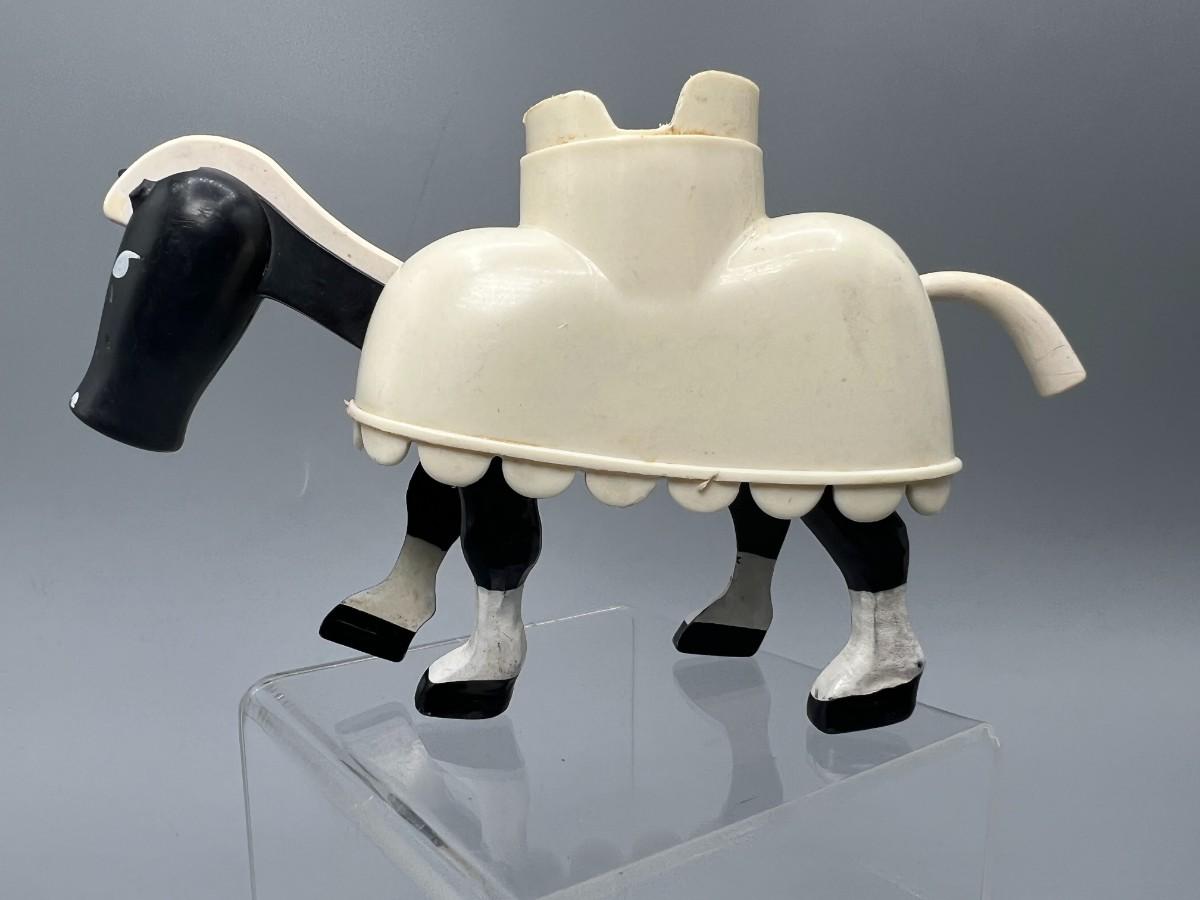 Rare vintage Fisher Price Little People playset #993 Play Family Castle. This playset is incomplete. In good vintage condition, some wear from previous play. Family Castle play set includes castle, royal carriage with horse, yellow double bed (foam aged), round yellow dining table with food sticker intact, black horse wearing white saddle, Prince with crown, and knight in armor. Missing multiple pieces, including king, queen, and dragon.