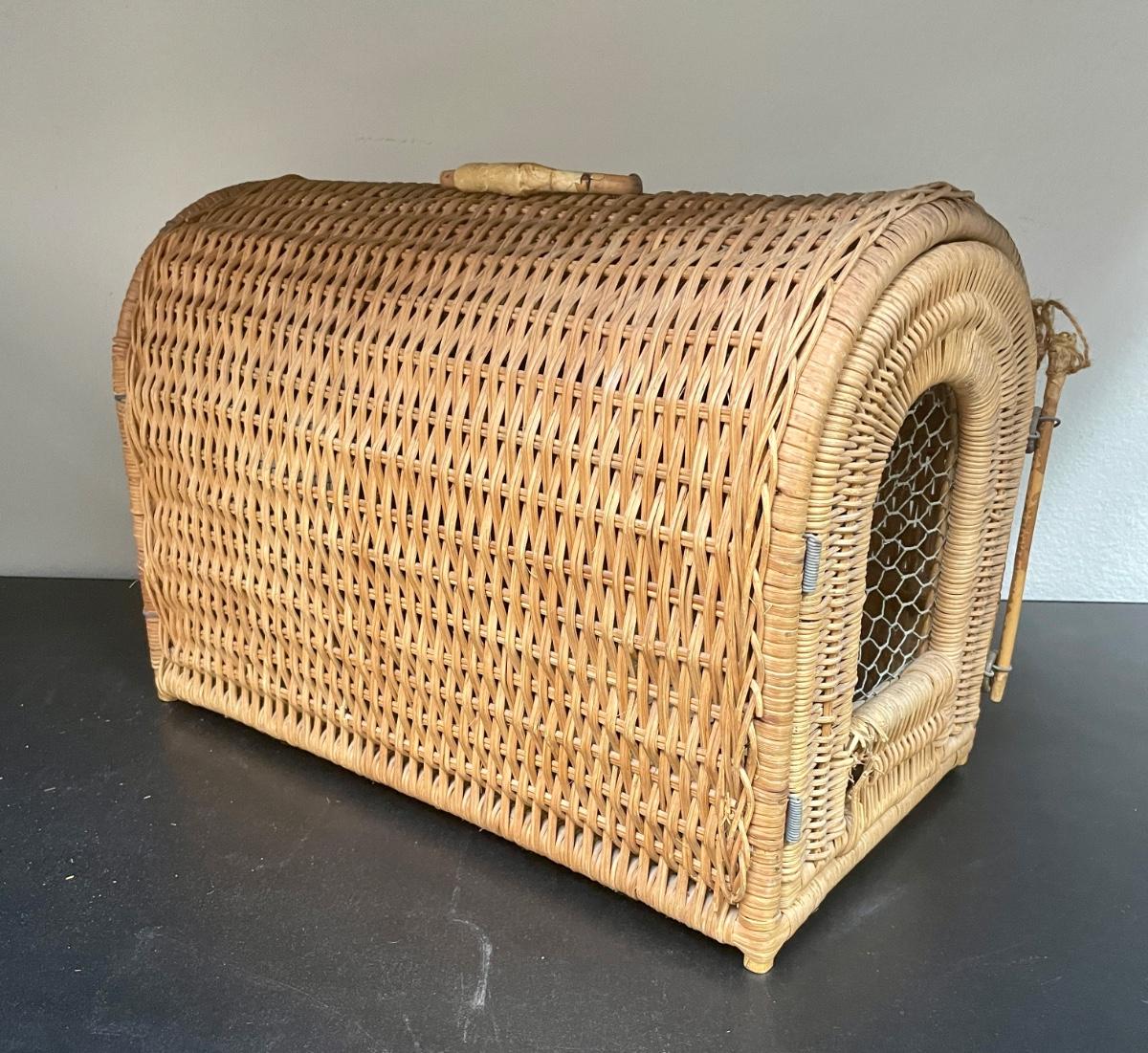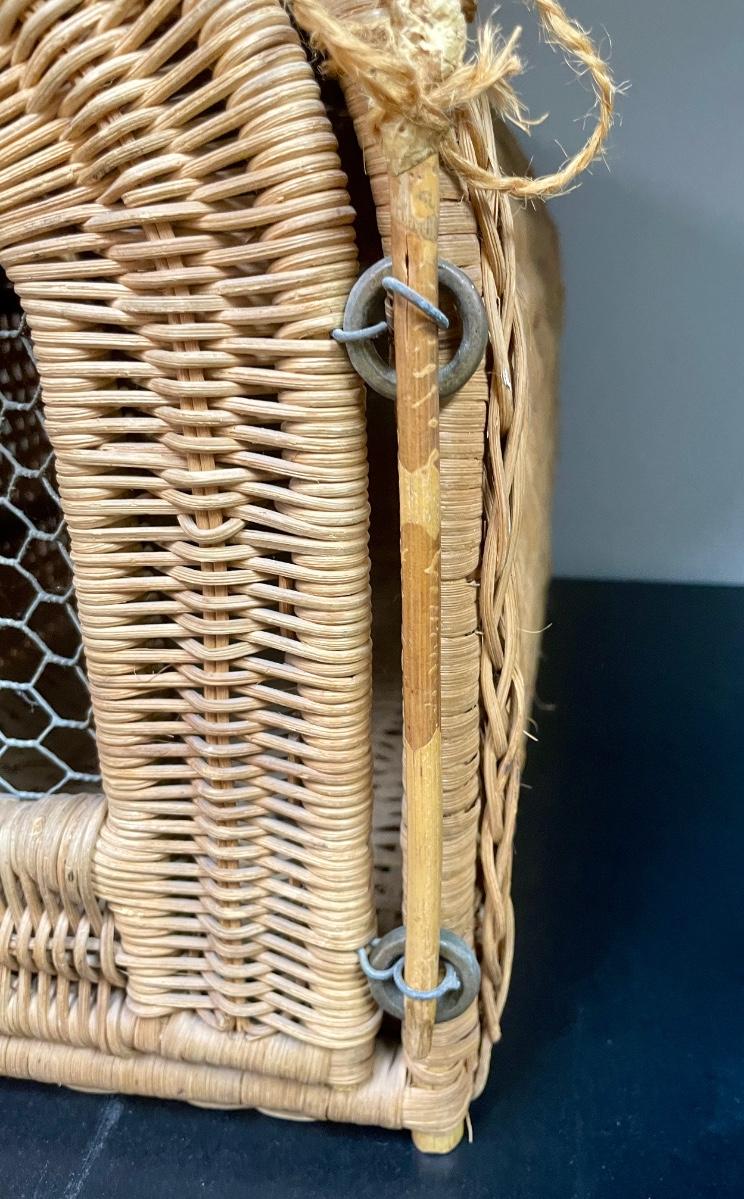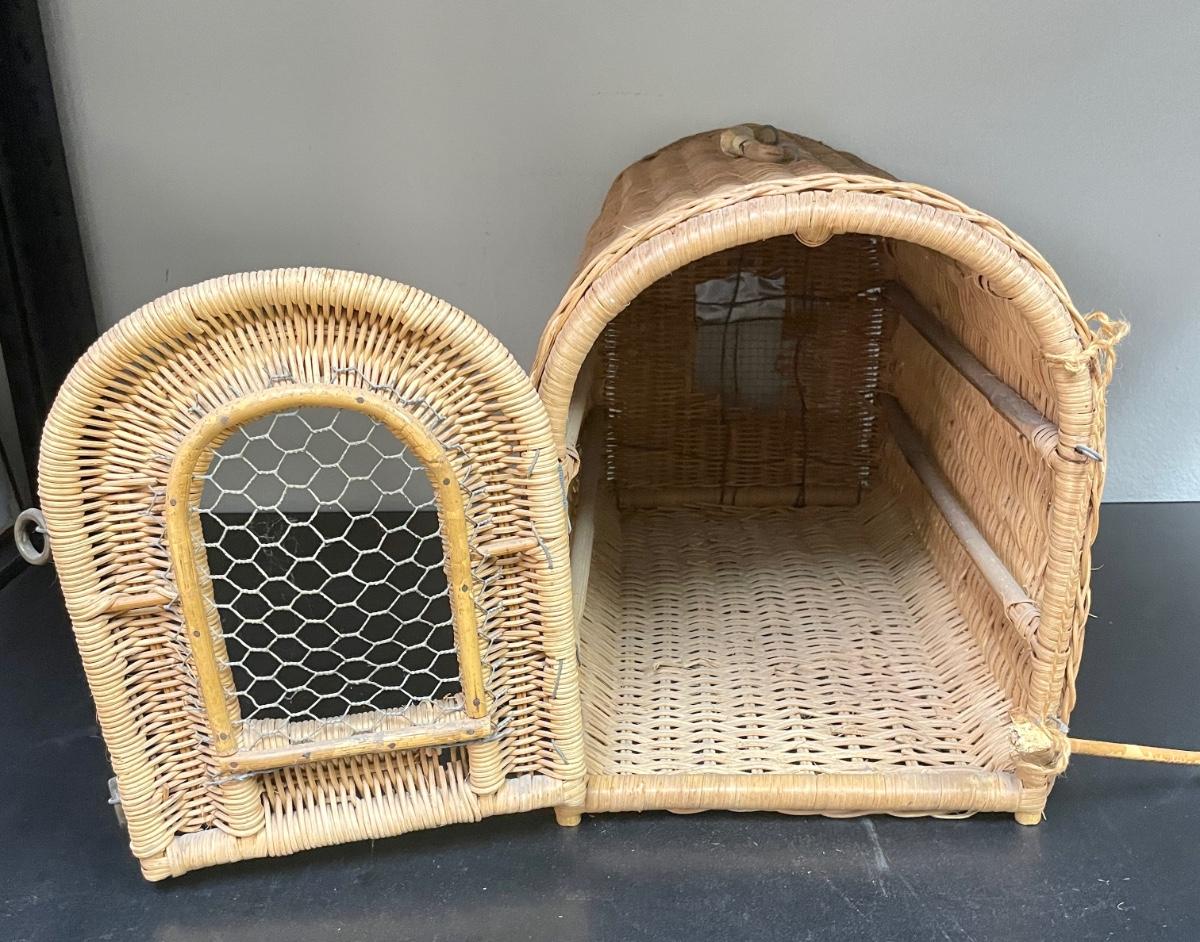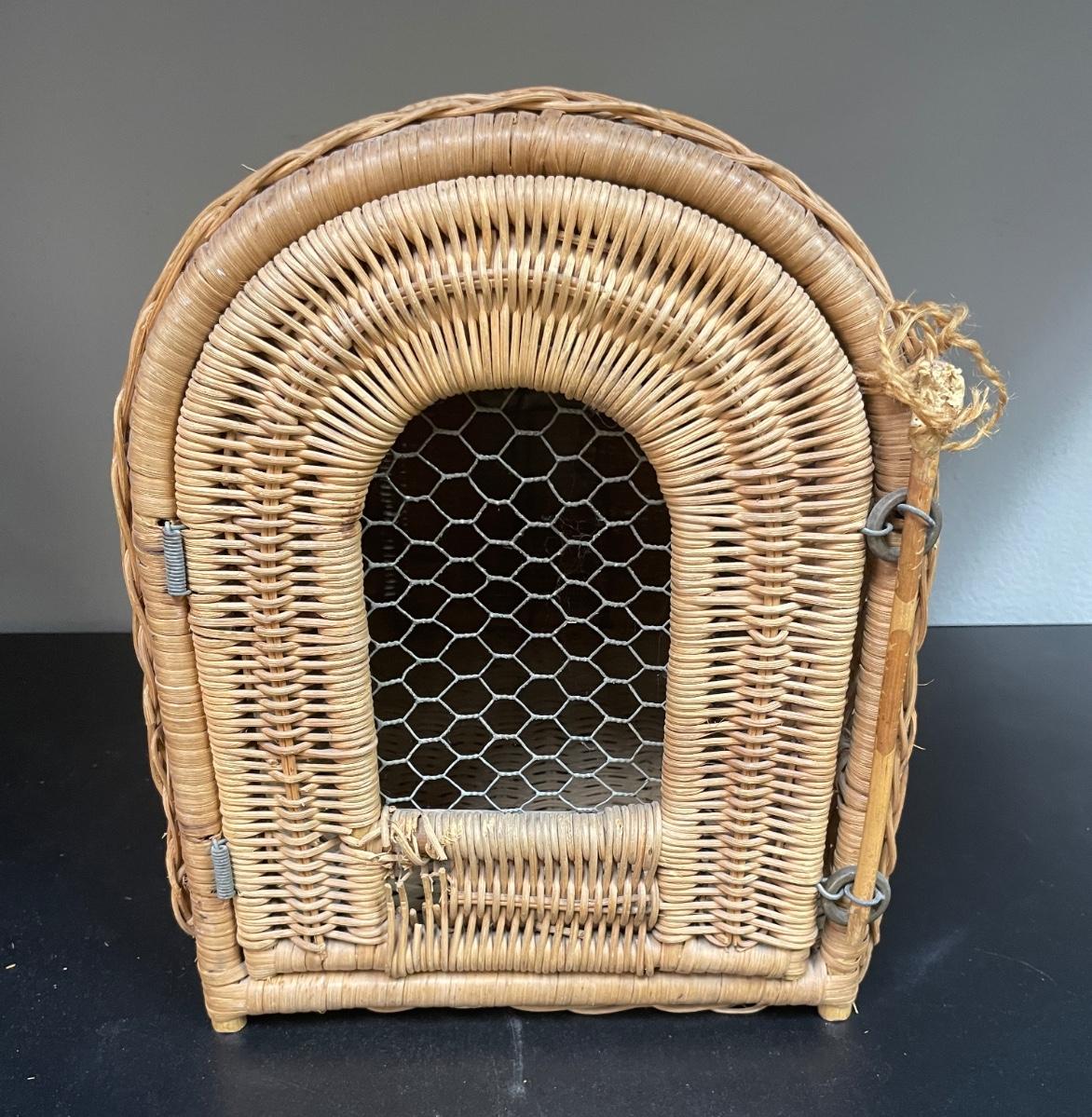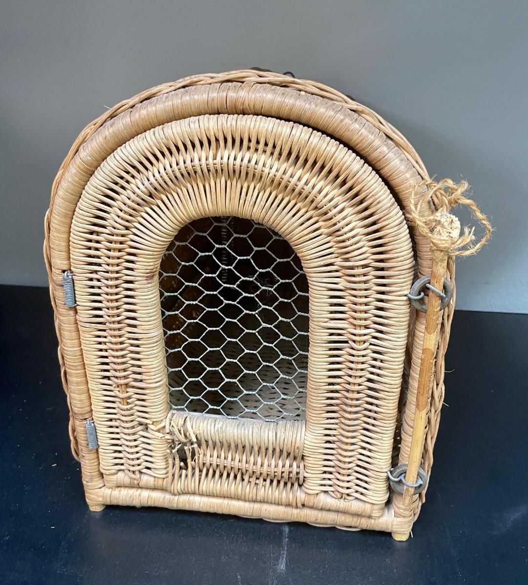 Vintage cage for transporting small animals, such as a cat. Somewhat dried out but intact, in good solid condition, see photos for size.