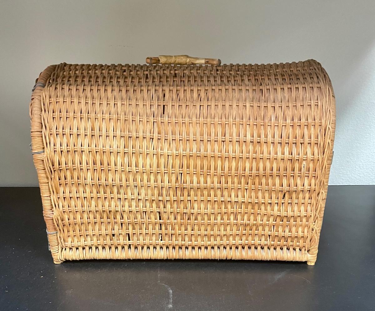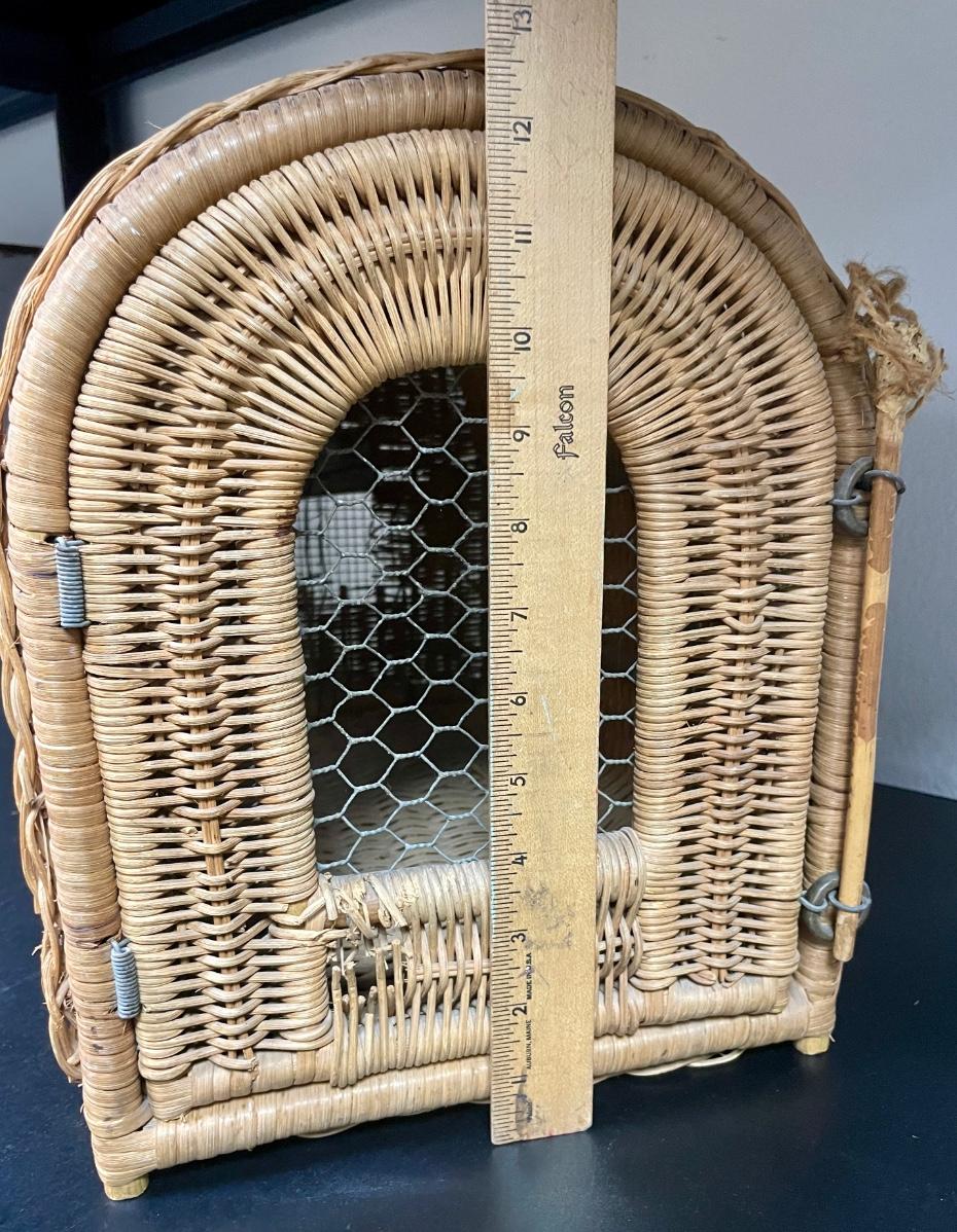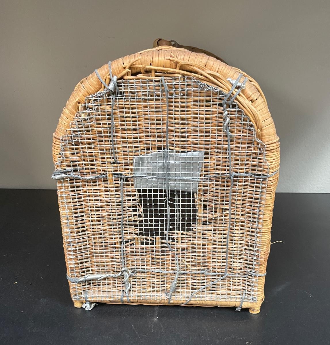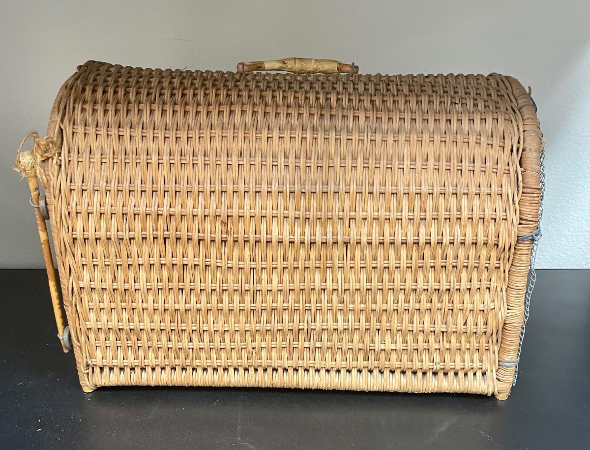 Vintage cage for transporting small animals, such as a cat. Somewhat dried out but intact, in good solid condition, see photos for size.