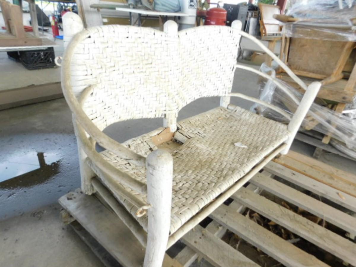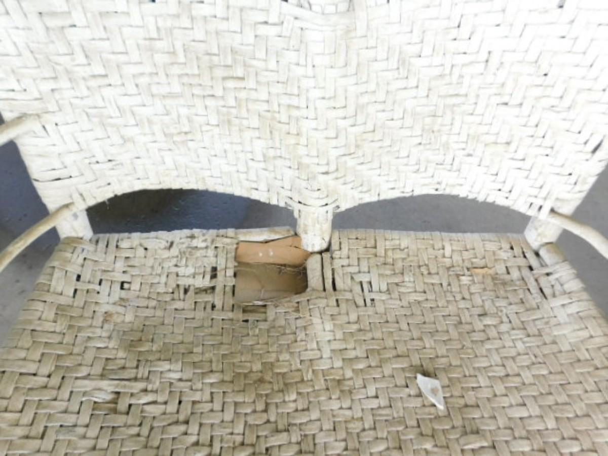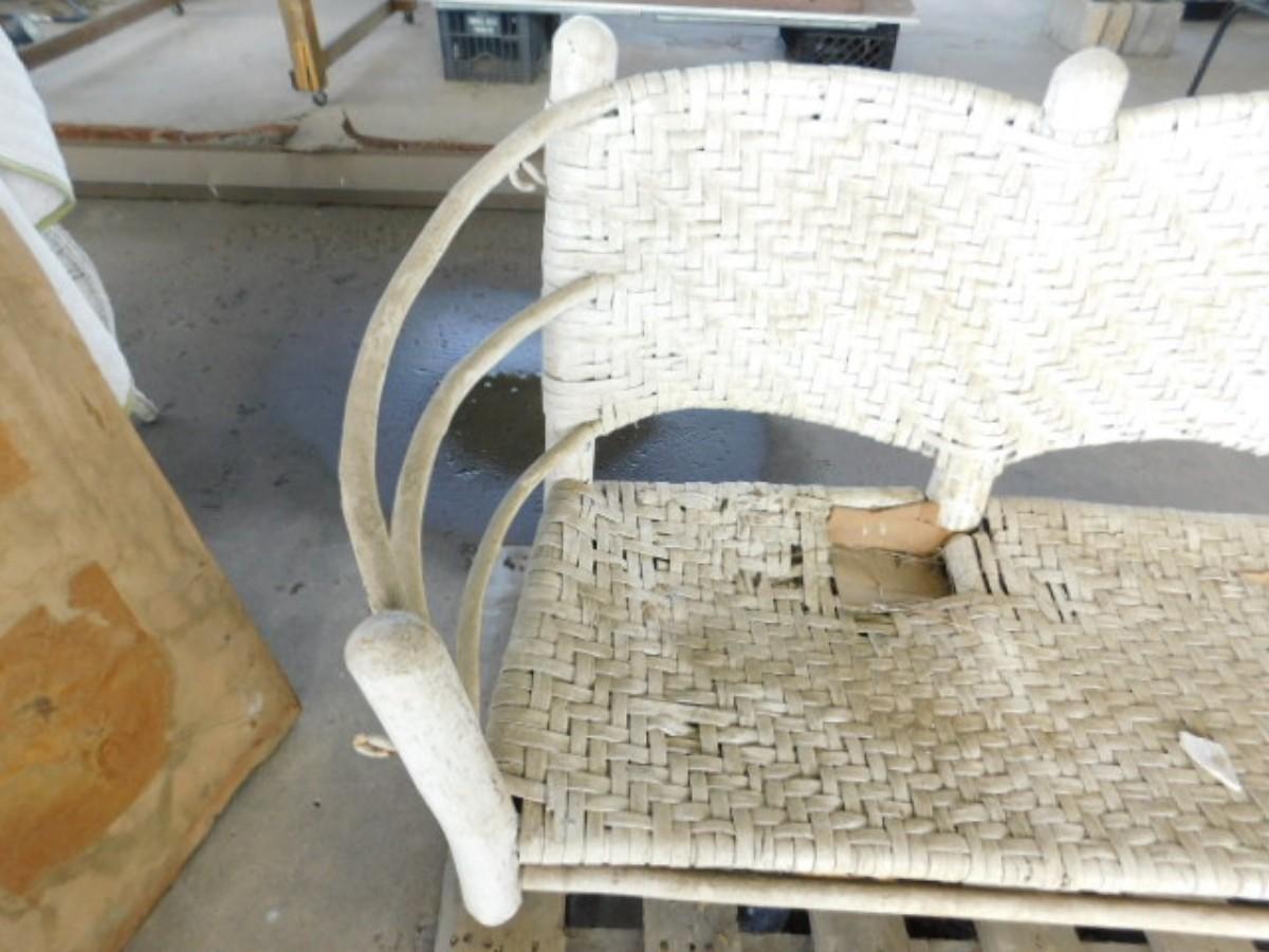 Vintage Rattan and Wicker Porch Swing Chair seat has some damage as shown.